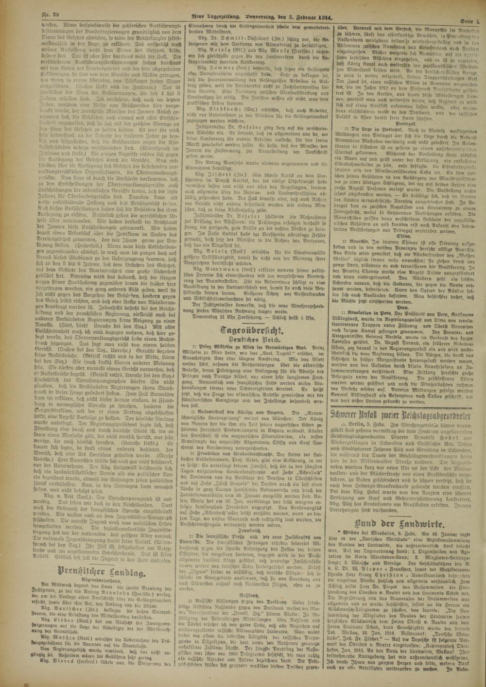 Neue Tageszeitung. Donnerstag, de« s. Februar 1914.