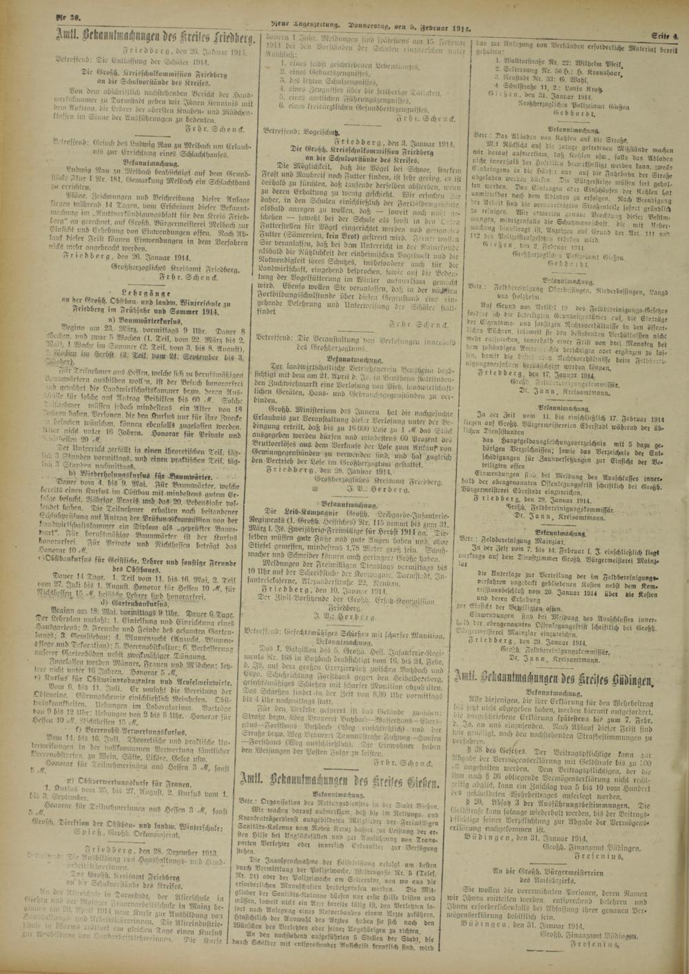 Friedbcrg, fien 26. Jalinar 1611. Betreffend: Die Entlassung der Schüler 1914.