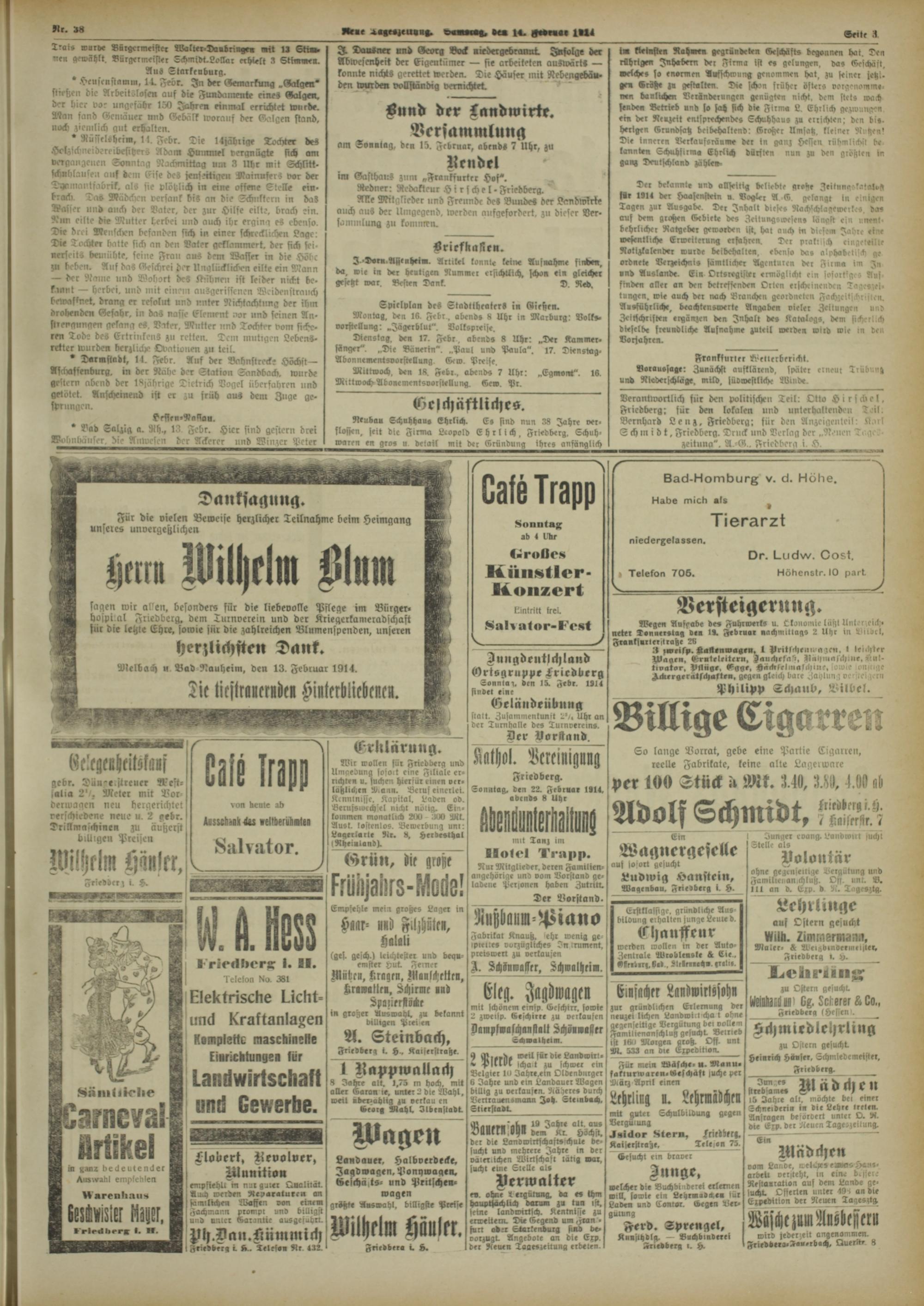 Melbach u Bad Nauheim, den 13. Februar 1914.