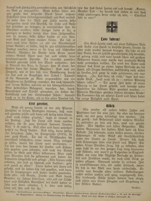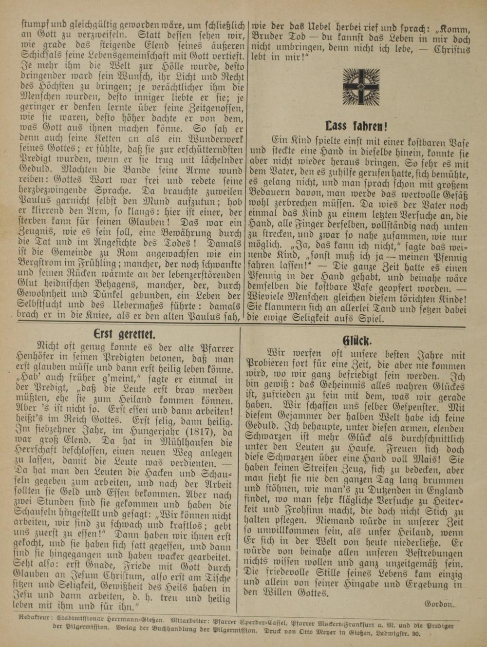 der Pilgermtsston. Verlag der Buchhandlung der Pilgermisston. Druck von Otto Meyer in Gießen, Ludwigstr. 30.