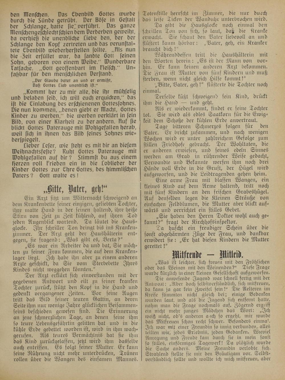 Lieber Leser, wie steht es mit dir an diesem Weihnachtsfeste? Ruht Gottes Daterauge mit Wohlgefallen auf dir? Stimmst du aus einem Herzen voll frieden ein in die CLoblieder der Kinder Gottes zur Ehre Gottes, des himmlischen Daters? Gott walte es!