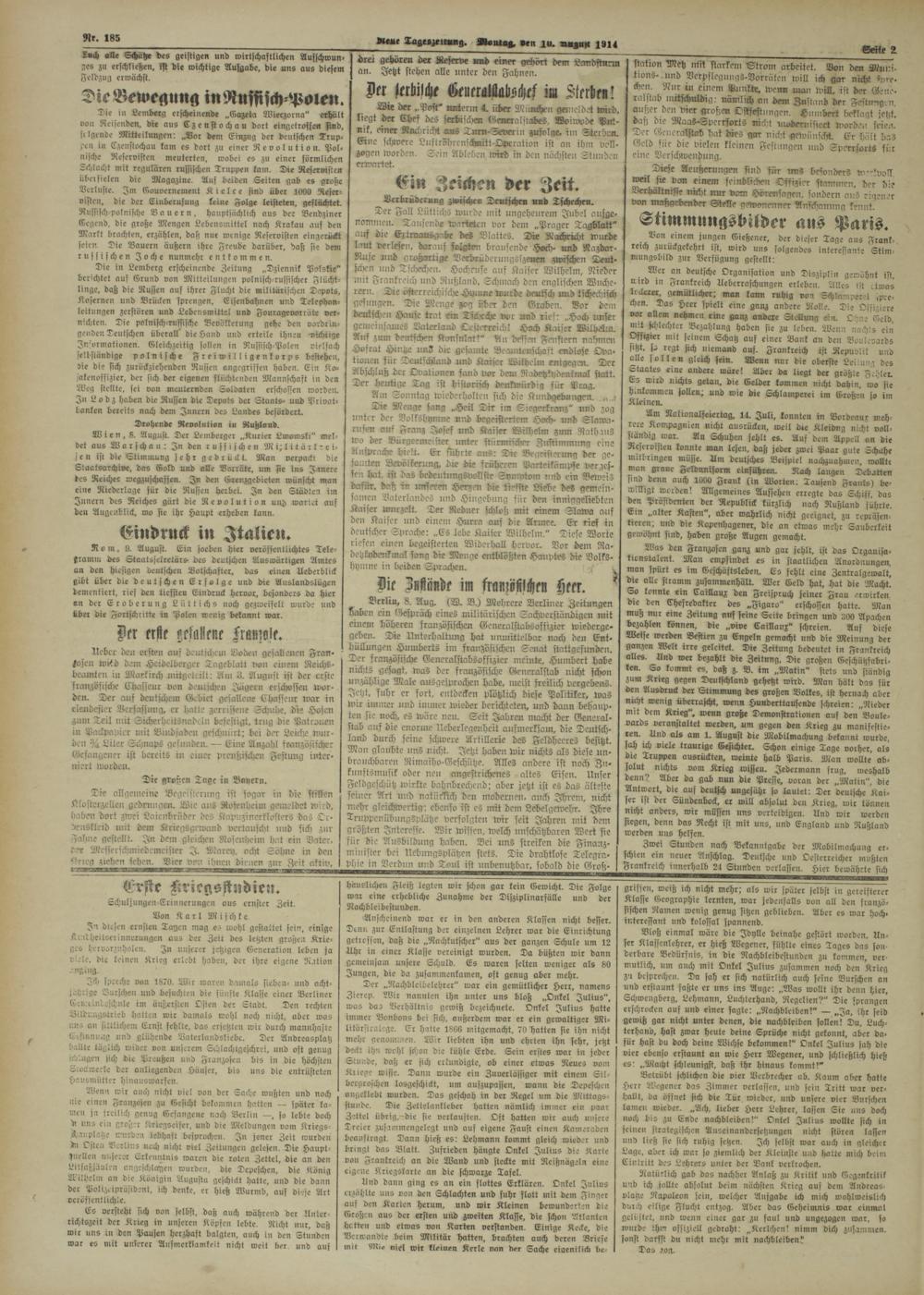 Zwei Stunden nach Bekanntgabe der Mobilmachung erschien ein neuer Anschlag. Deutsche und Ocsterrcicher mußten Frankreich innerhalb 24 Stunden verlassen. Hier bewährte sich