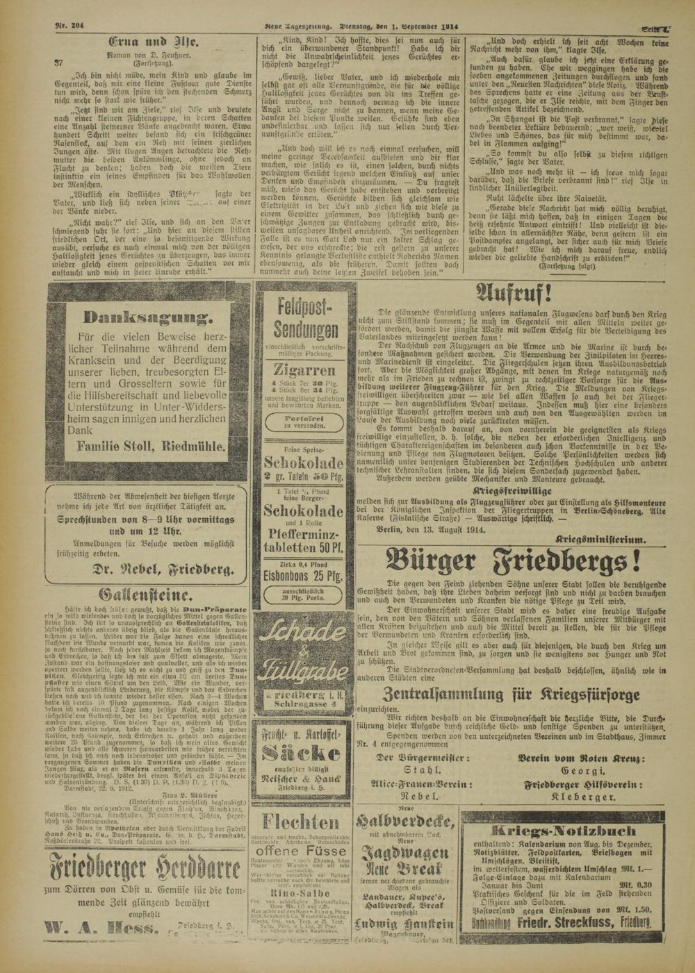 Der Einwohnerschaft unserer Stadt wird es daher eine freudige Aufgabe sein, den von den Vätern und Söhnen verlassenen Familien unserer Mitbürger mit allen Kräften bcizustehen und auch die Mittel bereit zu stellen, die für die Pflege ^der Verwundeten und Kranken erforderlich sind.