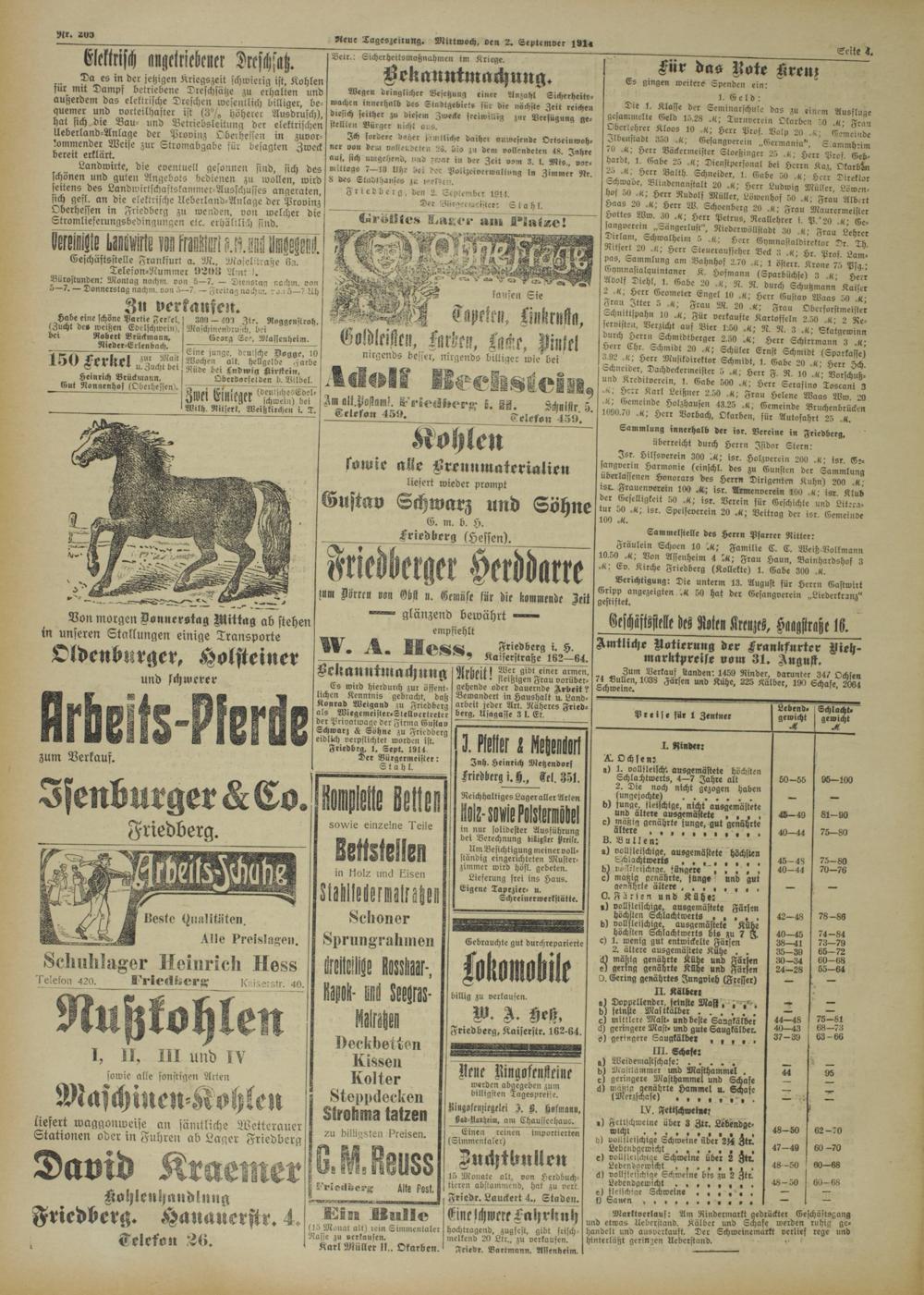 Amtliche Notierung der Frankfurter Uieh- marktpreise vom 31. August.