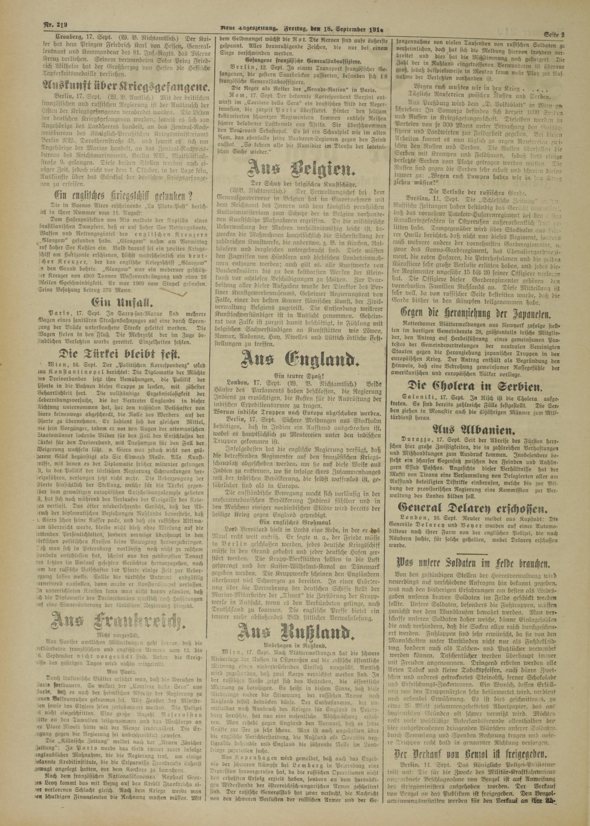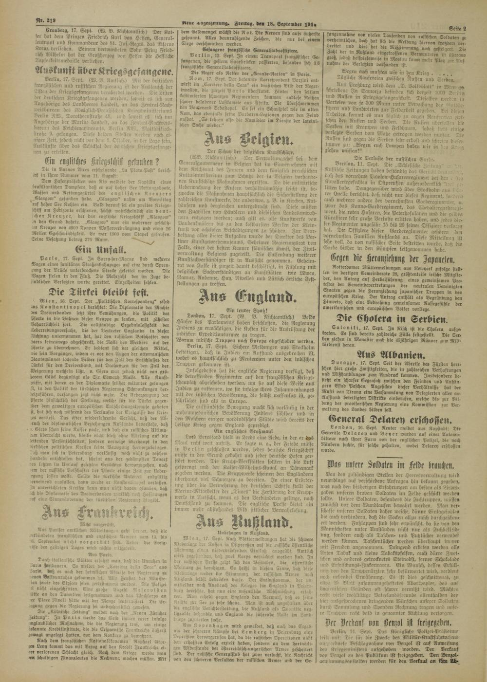 »reue a-ugeszeirung. Freitag, de« 18. September 191,