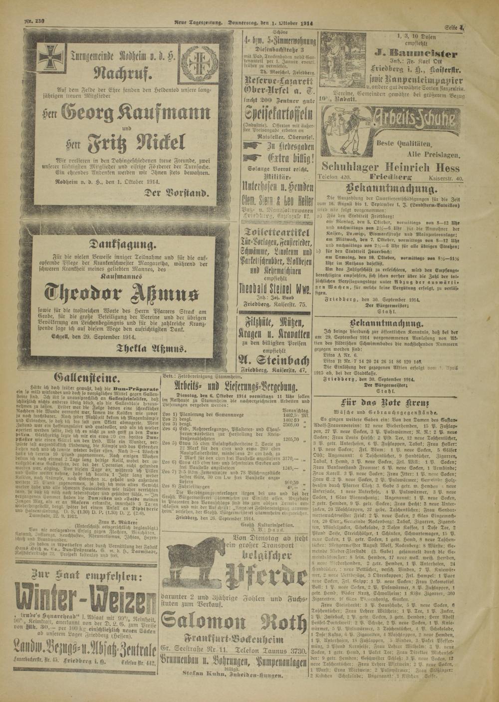 Rodheim v. d. H., den 1. Oktober 1914.