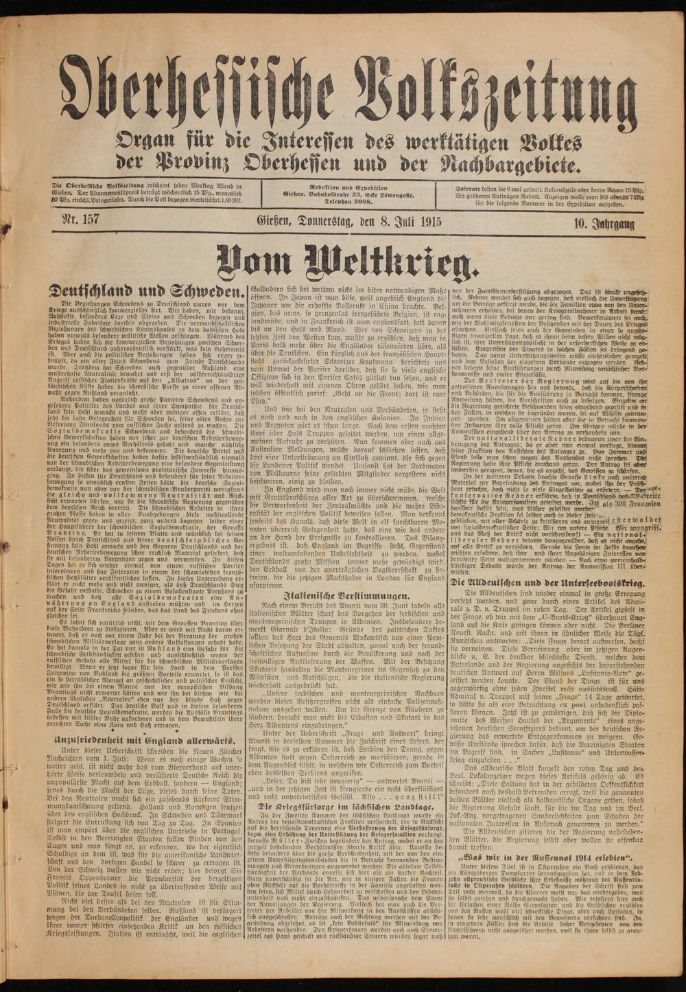 Gießen, Donnerstag, den 8. Juli 1915