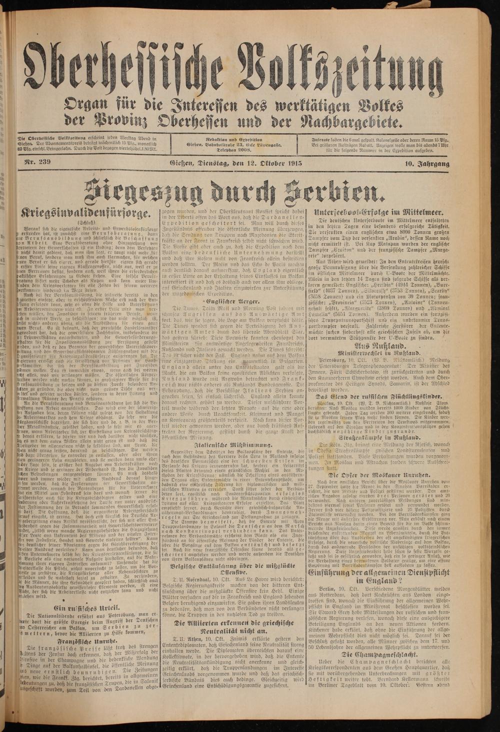 Gießzen, Dienstag, den 12. Oktober 1915