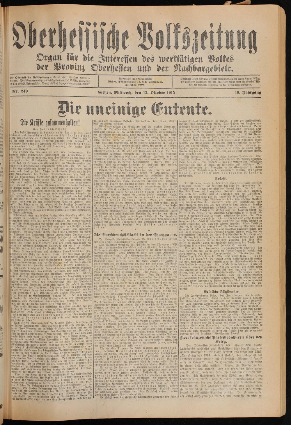 Organ für die Interessen des werktätigen Volkes J der Provinz Oberhessen und der Nachbargebiete.