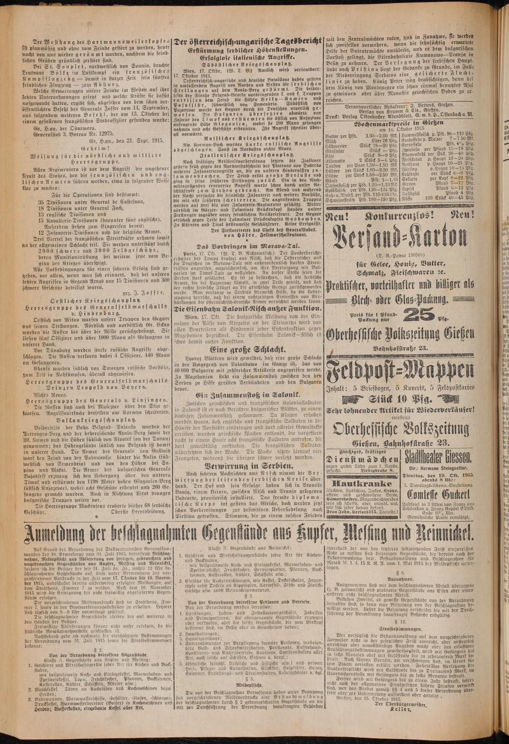 Wien, 17. Oktbr.(W. T. B.) Amtlich wird verlautbart: 17. Oktober 1915. 8