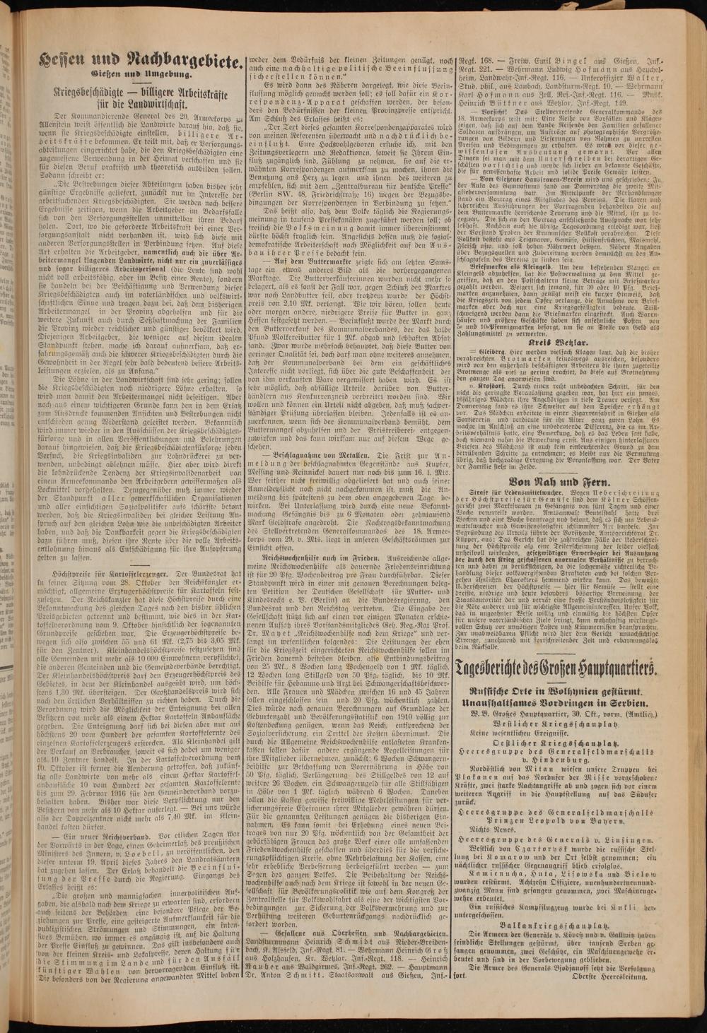 Regt. 168.— Freiw. Emil Bingel aus Gießen, Inf. Regt. 221.— Wehrmann Ludwig Hofmann aus Heuchel⸗ heim, Landwehr⸗Inf.⸗Regt. 116.— Unteroffizier Walter, Stud. phil., aus Laubach, Landsturm-Regt. 10.— Wehrmann Karl Hofmann aus Zell, Res.⸗Inf.⸗Regt. 116.— Musk, Heinrich Büttner aus Wetzlar, Inf.⸗Regt. 149.
