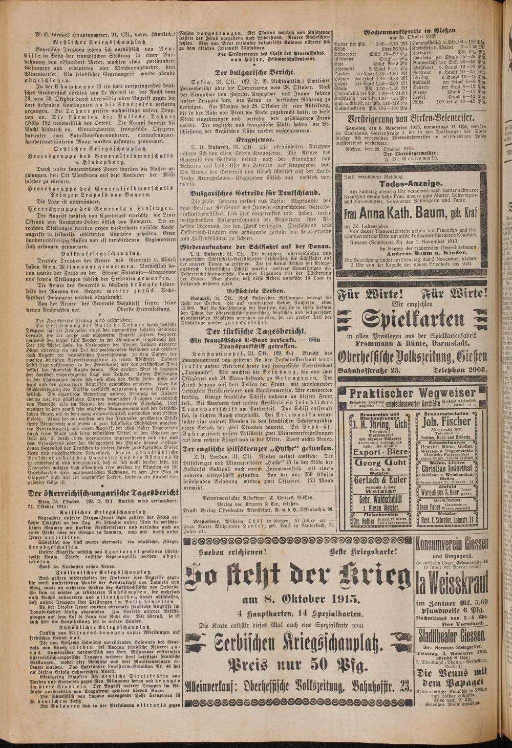 meistbietend versteigert. 1 Gießen, den 29. Oktober 1915.