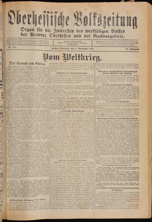r die Juteressen des werktätigen Volkes Provinz Oberhessen und der Nachbargebiete.