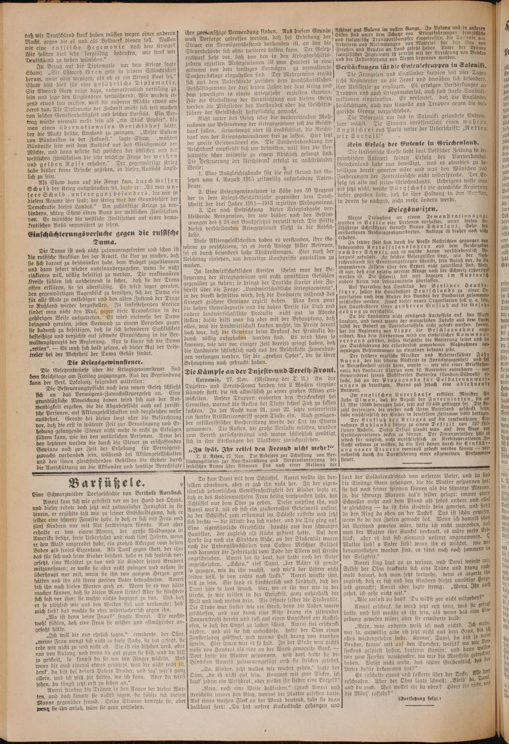 Cernowitz, 27. Nov.(Meldung der T. U.) An der Dujester⸗ und Sereth⸗Front fanden seit 2 Wochen einzelne Kämpfe statt, die sich allmählich zu einer großen Aktion ent⸗ wickelten. Unsere Truppen eroberten den Brückenkopf bei Cernelioa, worauf die Russen bei Tluste festen Fuß zu fassen suchten. In der Nacht vom 21. zum 22. setzte unsererseits ein starker Artillerieangriff gegen Tluste ein. Nach genügen— der artilleristischer Vorbereitung wurde der Ort im Sturm genommen. Die Russen, die große Verluste erlitten, wurden zum Sereth zurückgedrängt und waren schließlich genötigt, sich in ihre Stellungen bei Ulaskovec zurückzuziehen.