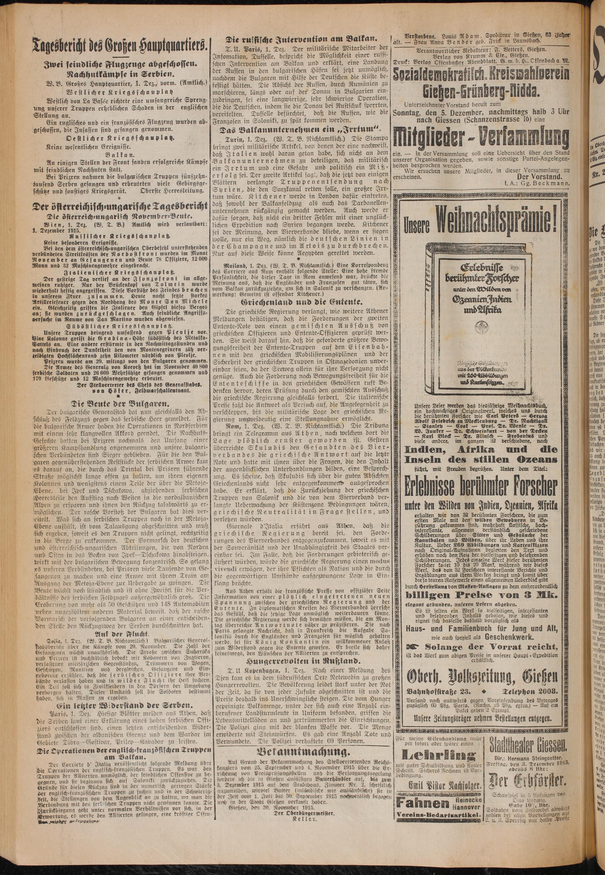 ö Dir.: Hermann Steingoetter. Freitag, den 3. Dezember 1915,