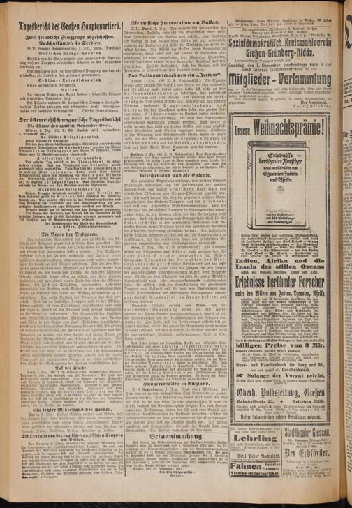 Prizren wurde am 29. mittags von den Bulgaren genommen. Die Armee des Generals von Kocveß hat im November 40 800 serbische Soldaten und 26 600 Wehrfähige gefangen genommen und 179 Geschüge und 12 Maschinengewehre erbeutet. Der Stellvertreter des Chefs des Generalstabes. von Höfer, Feldmarschalleutnaut. 8