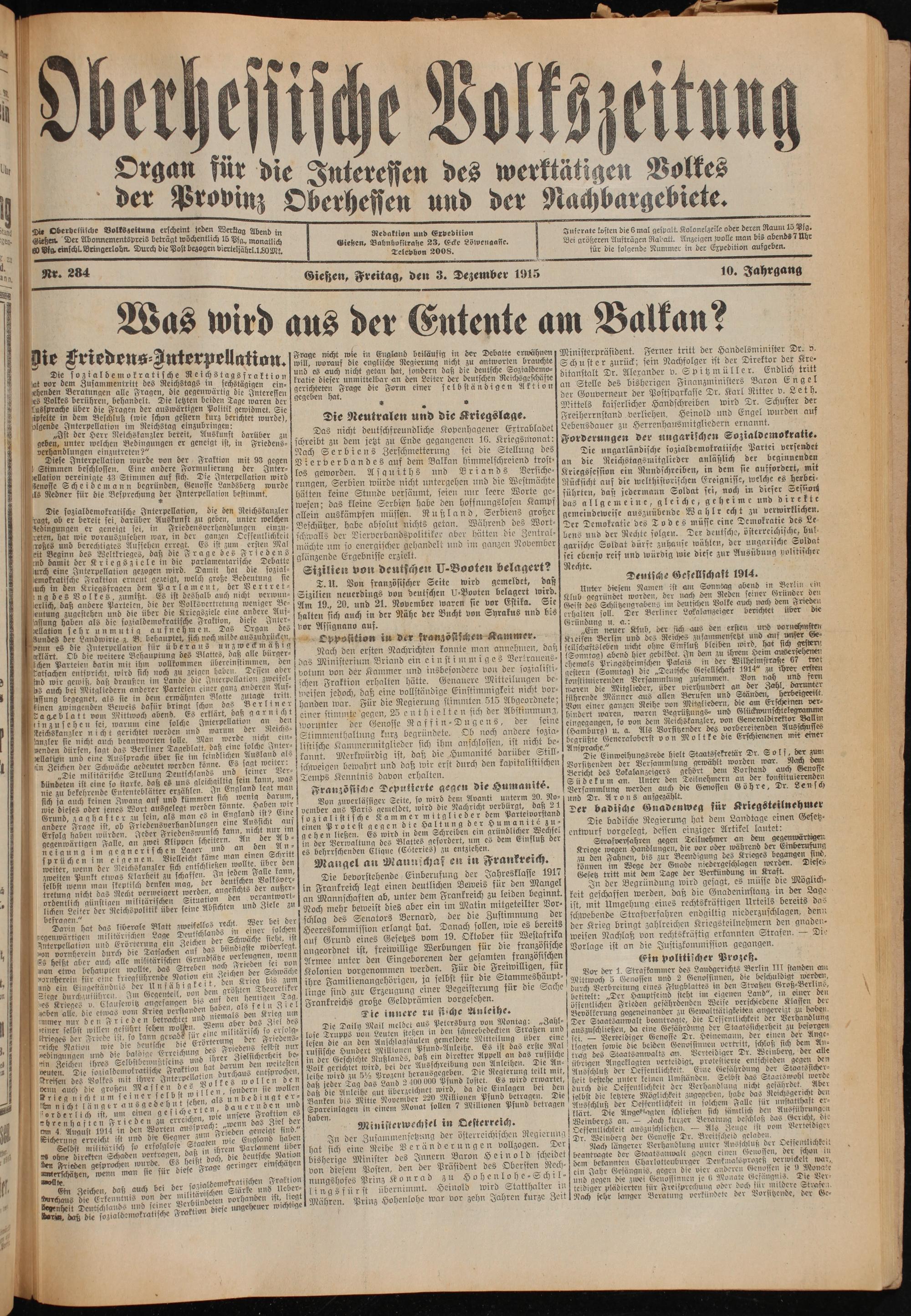 Gießen, Freitag, den 3. Dezember 1915