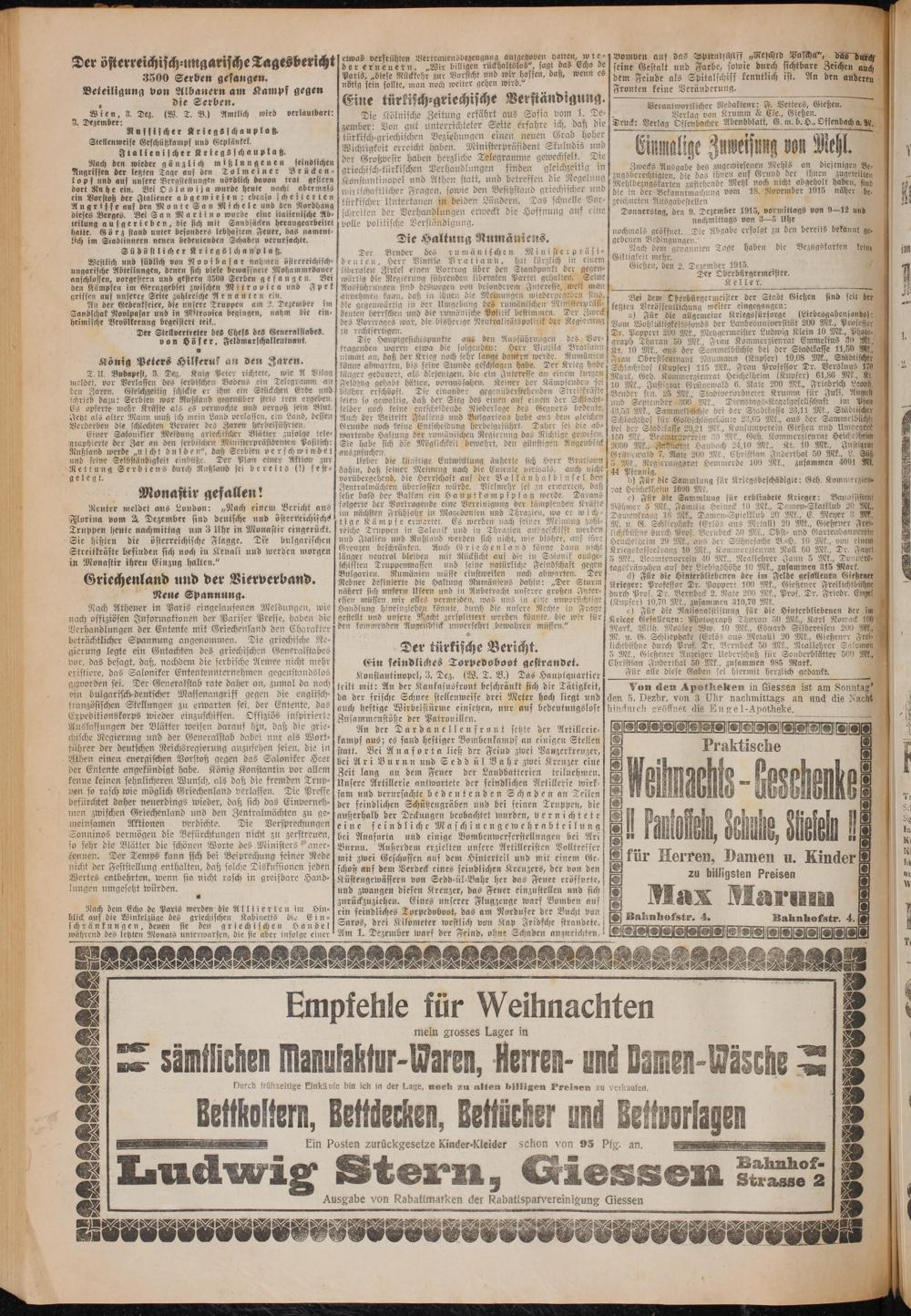 Gießen, den 2. Dezember 1915. 5 Der Oberbürgermeister.