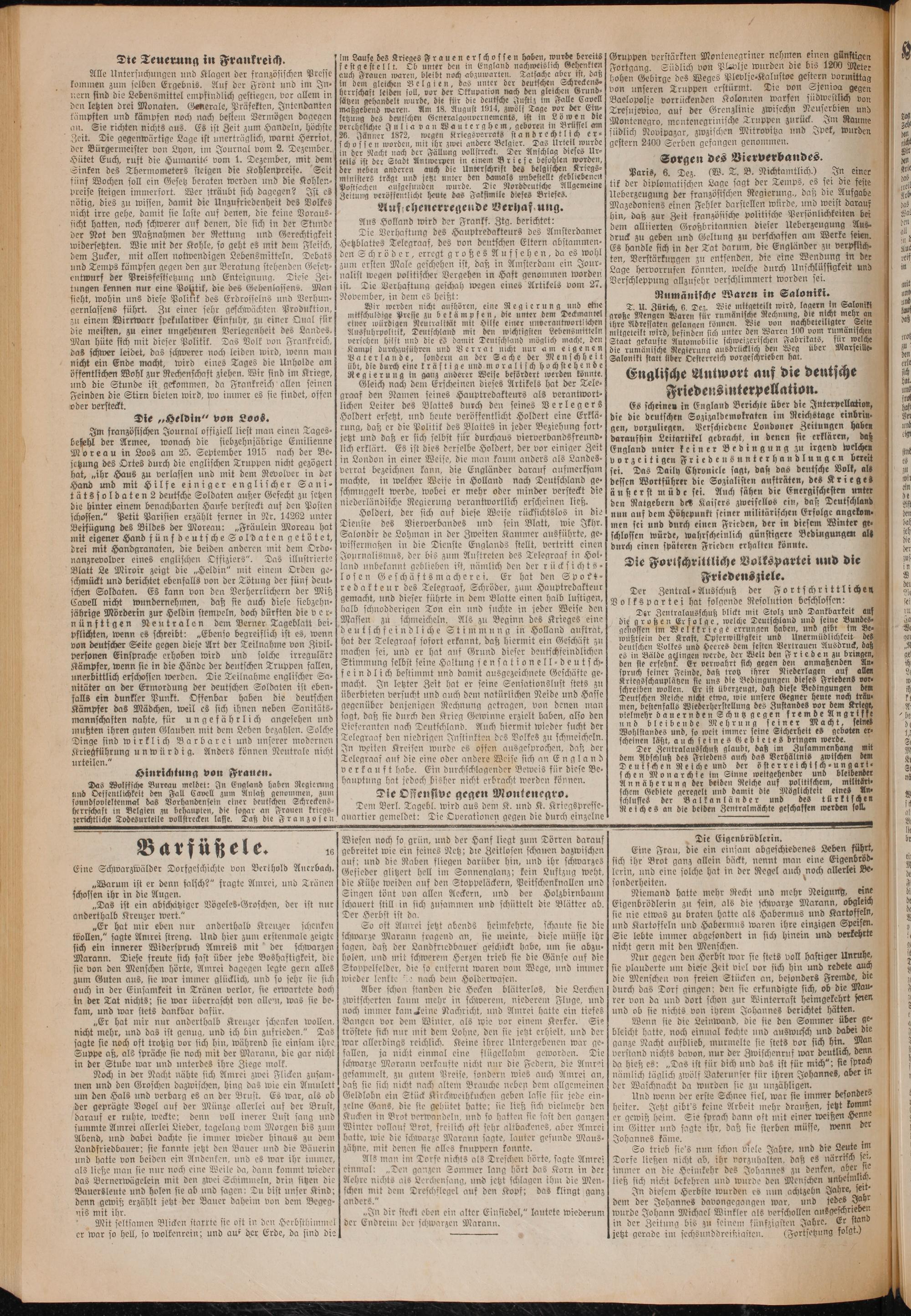 falls ein dunkler Punkt. Offenbar haben die deutschen Kämpfer das Mädchen, weil es sich ihnen neben Sanitäts⸗ mannschaften nahte, fürn ungefährlich angesehen und mußten ihren guten Glauben mit dem Leben bezahlen. Solche Dinge sind wirklich Barbarei und unserer modernen Kriegführung un würdig. Anders können Neutrale nicht urteilen.“ Hinrichtung von Frauen.