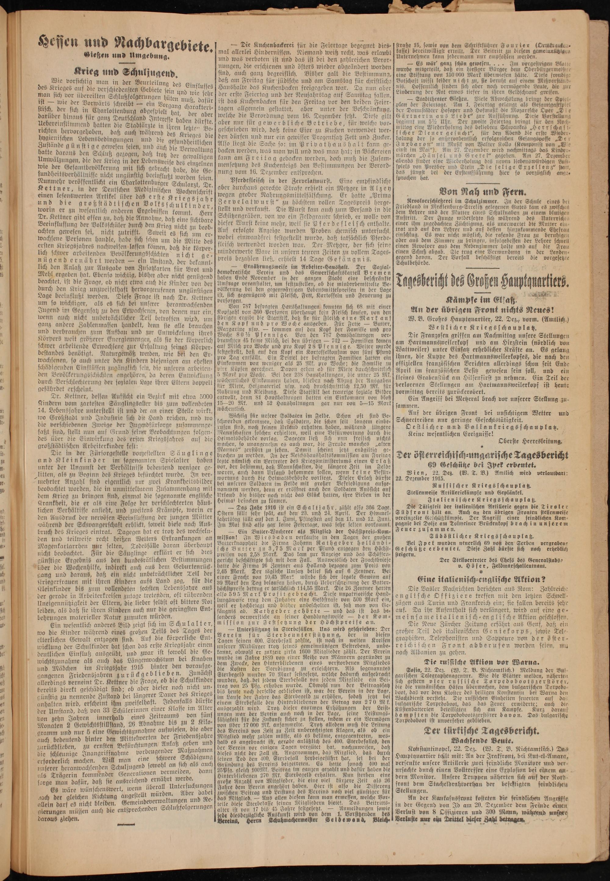 Gießen und Umgebung. . Krieg und Schuljugend.