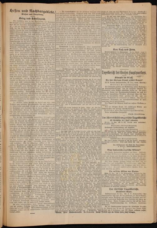 Tagebbericht des Großen Hauptguartiers. Kampfe im Elsa ß An der übrigen Front nichts Neues! W. B. Großes Hauptquartier, 22. Dez., vorm.(Amtlich.) Westlicher Kriegsschauplatz.