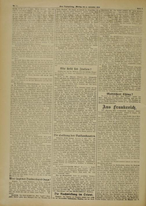 Neue Tageszeitung. Montag, den 2- piovember 1911