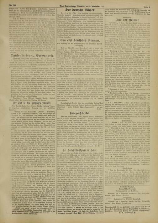 Reue Tageszeitung. Dien^ag, den 3. November 191«