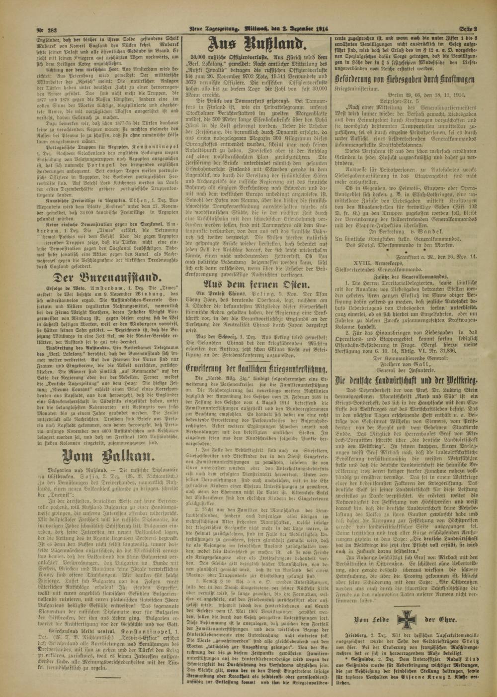 2, Für das Hinausbringen von Liebesgaben in das Operations- und'Etappengebiet kommt fortan lediglich Eisenbahn-Beförderung in Frage. (Dergl. hierzu meine Verfügung vom 6, 10, 11, Abtlg. VI. Nr. 31,836.