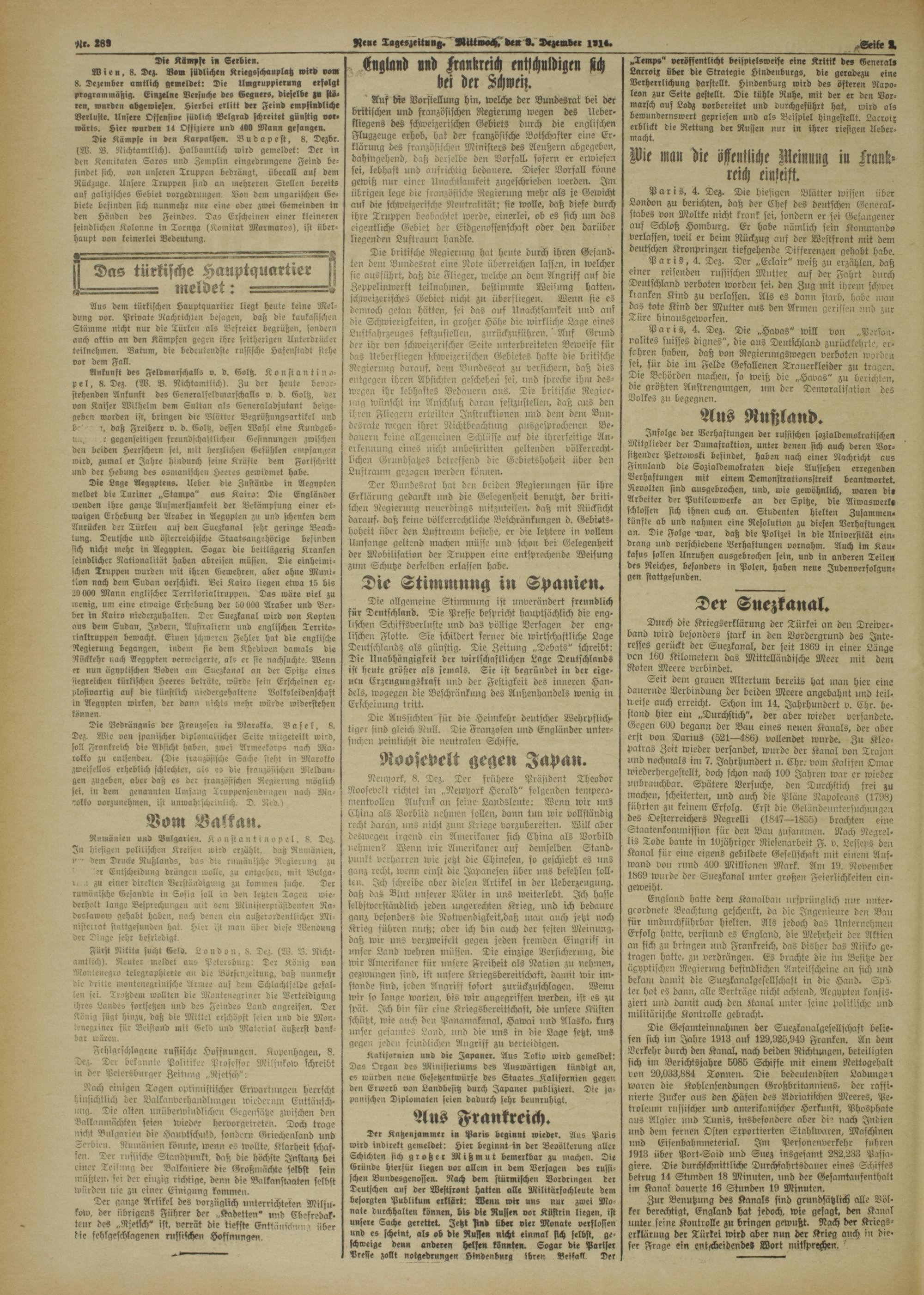 JJtne Tageszeitnng. Mittwoch, den 9. Dezenrber i»i».