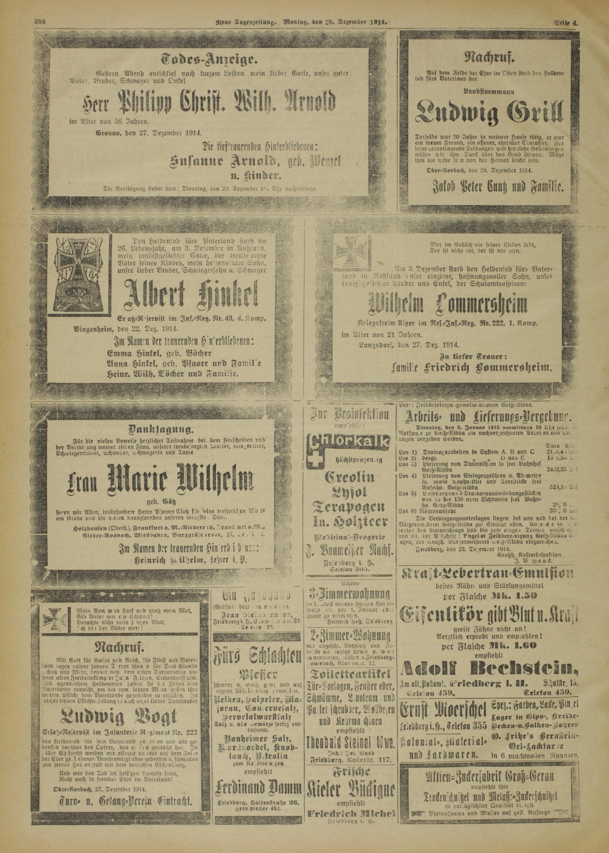 Ober-Rosbach, 27. Dezember 1014.