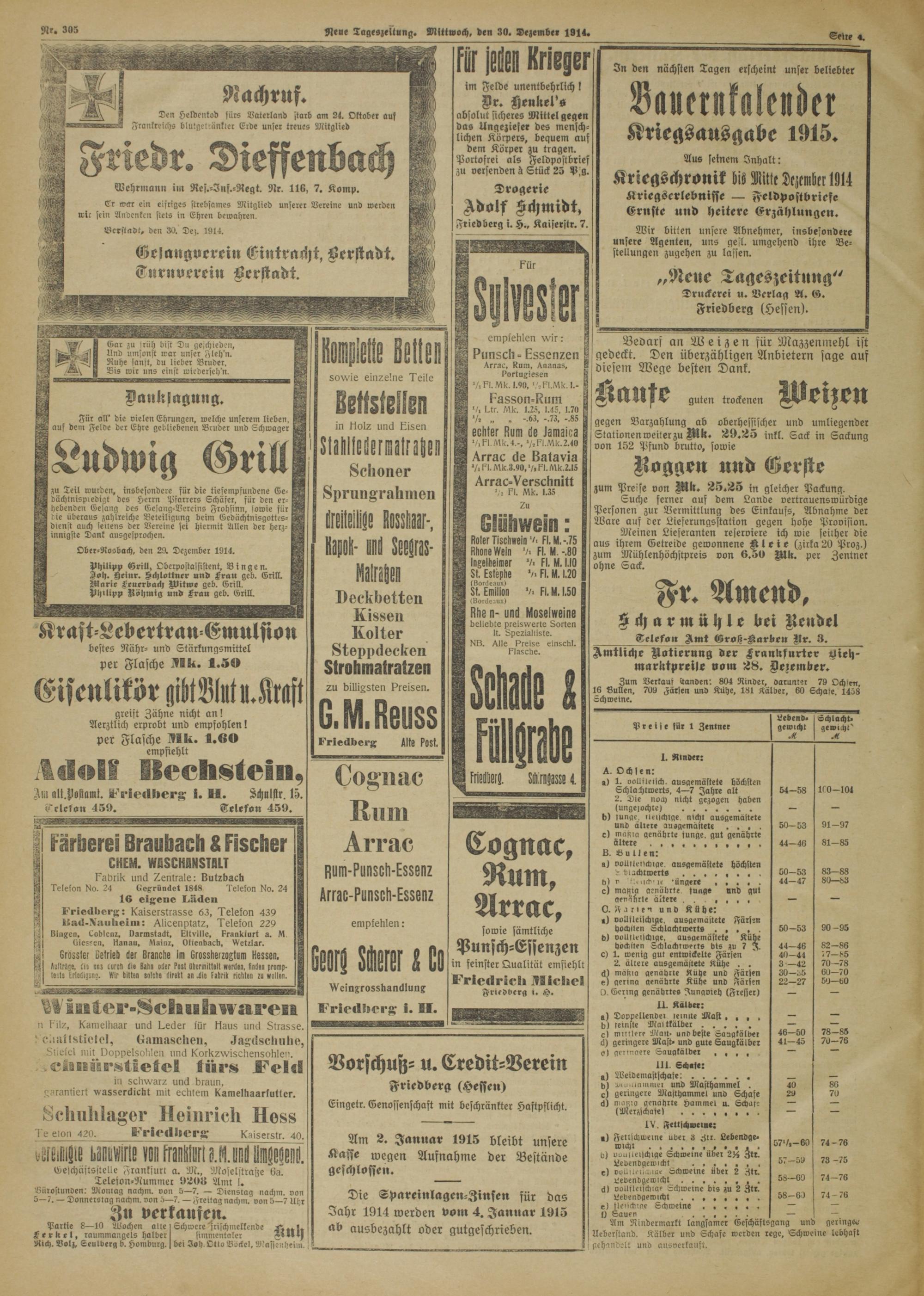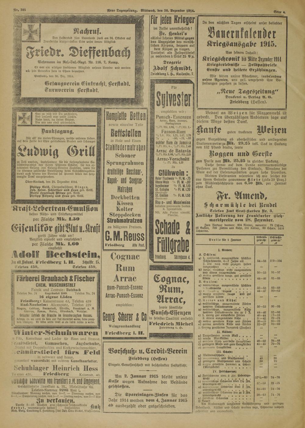 Am 2. Januar 1915 bleibt unsere Kaffe wegen Aufnahme der Bestände geschloffen. _