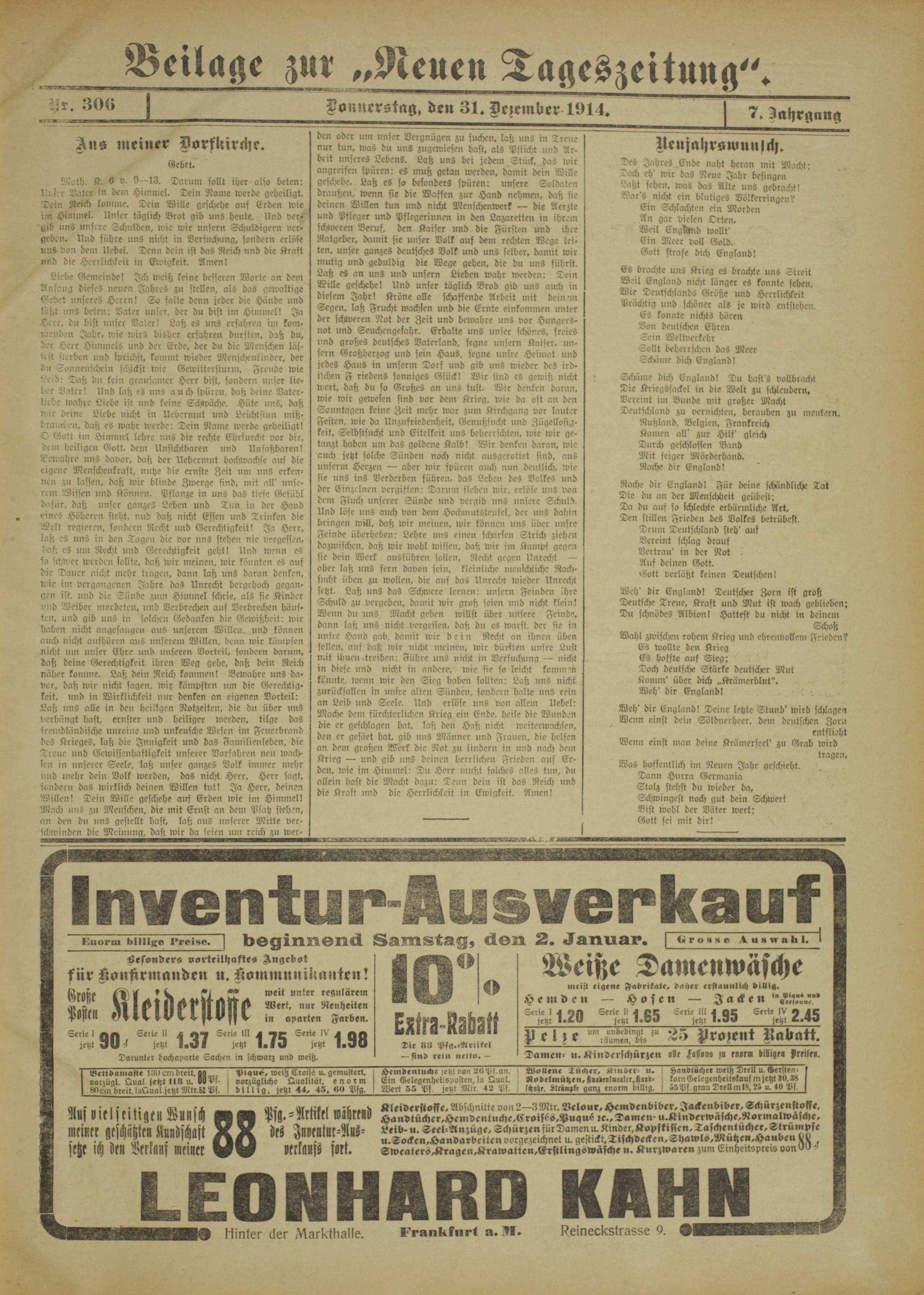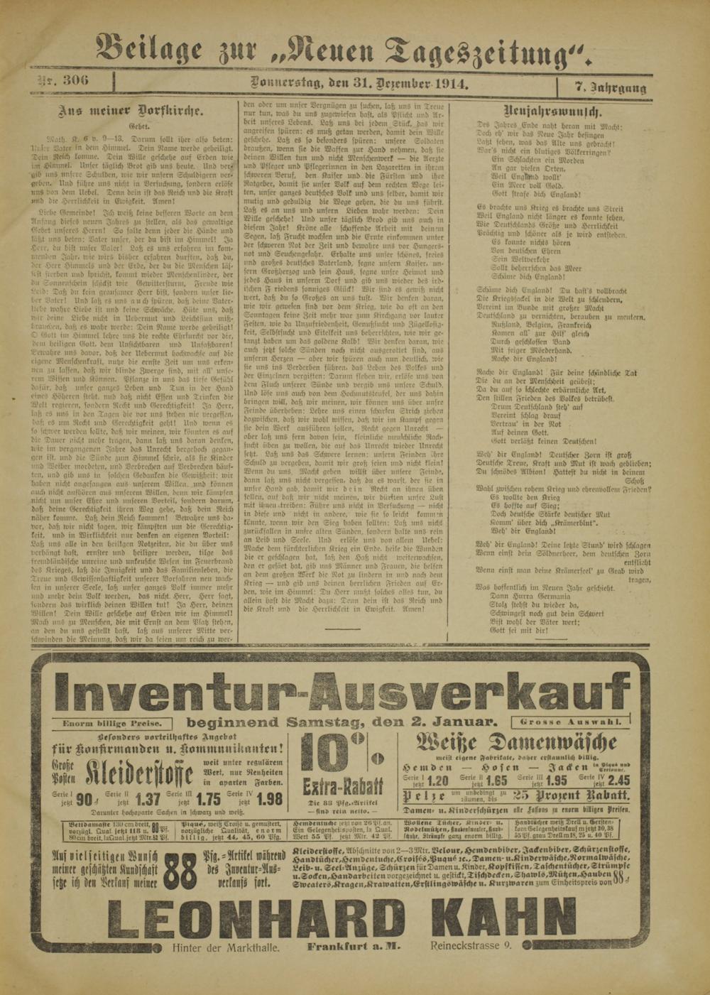 Beilage zur „Neuen Tagest eitun g".
