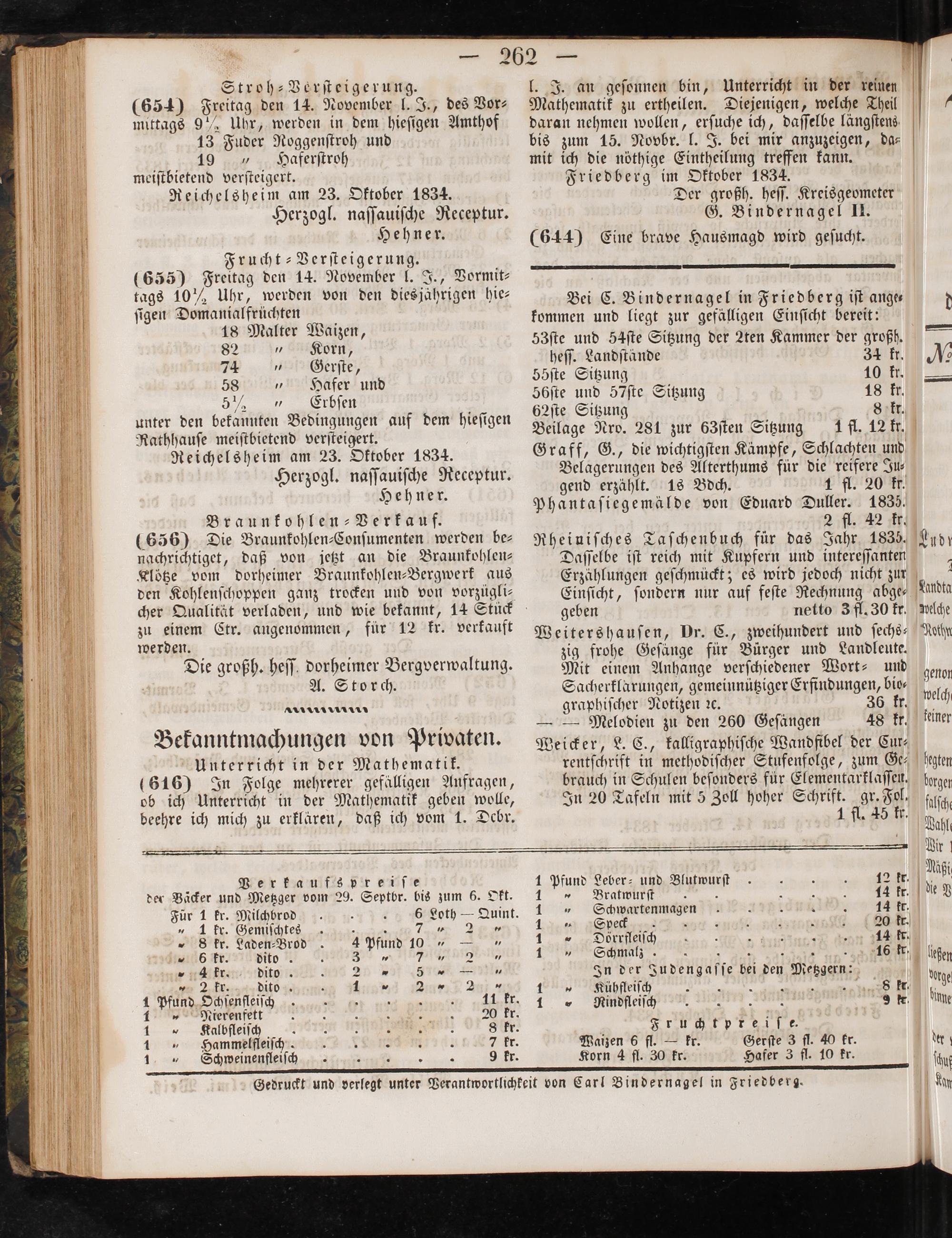 Gedruckt und verlegt unter Verantwortlichkeit von Carl Bindernagel in Friedberg.