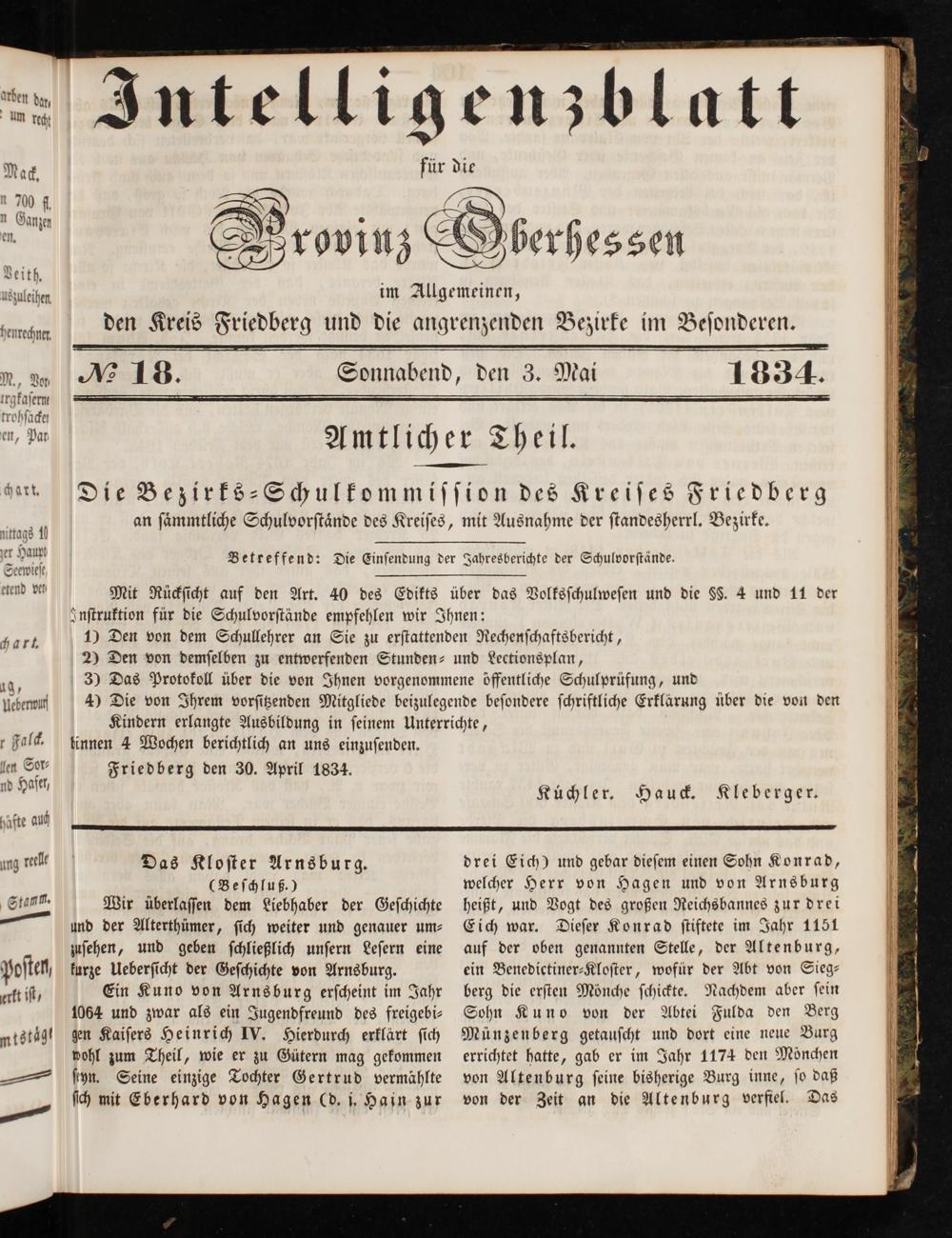 tinnen 4 Wochen berichtlich an uns einzuſenden. Friedberg den 30. April 1834.