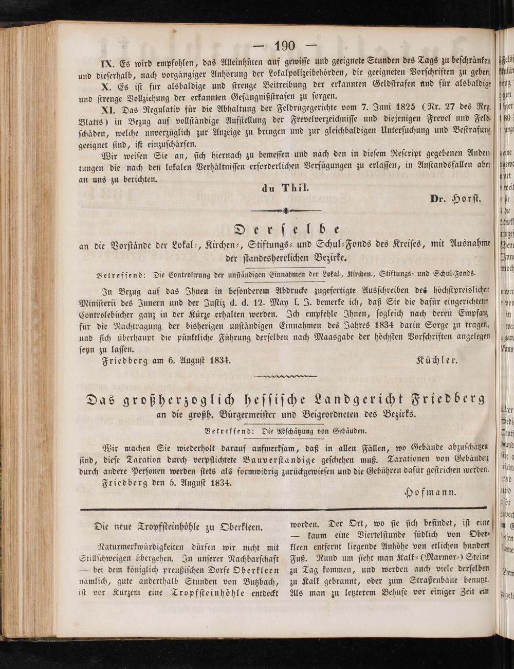 Friedberg den 5. Auguſt 1834. Hofmann.