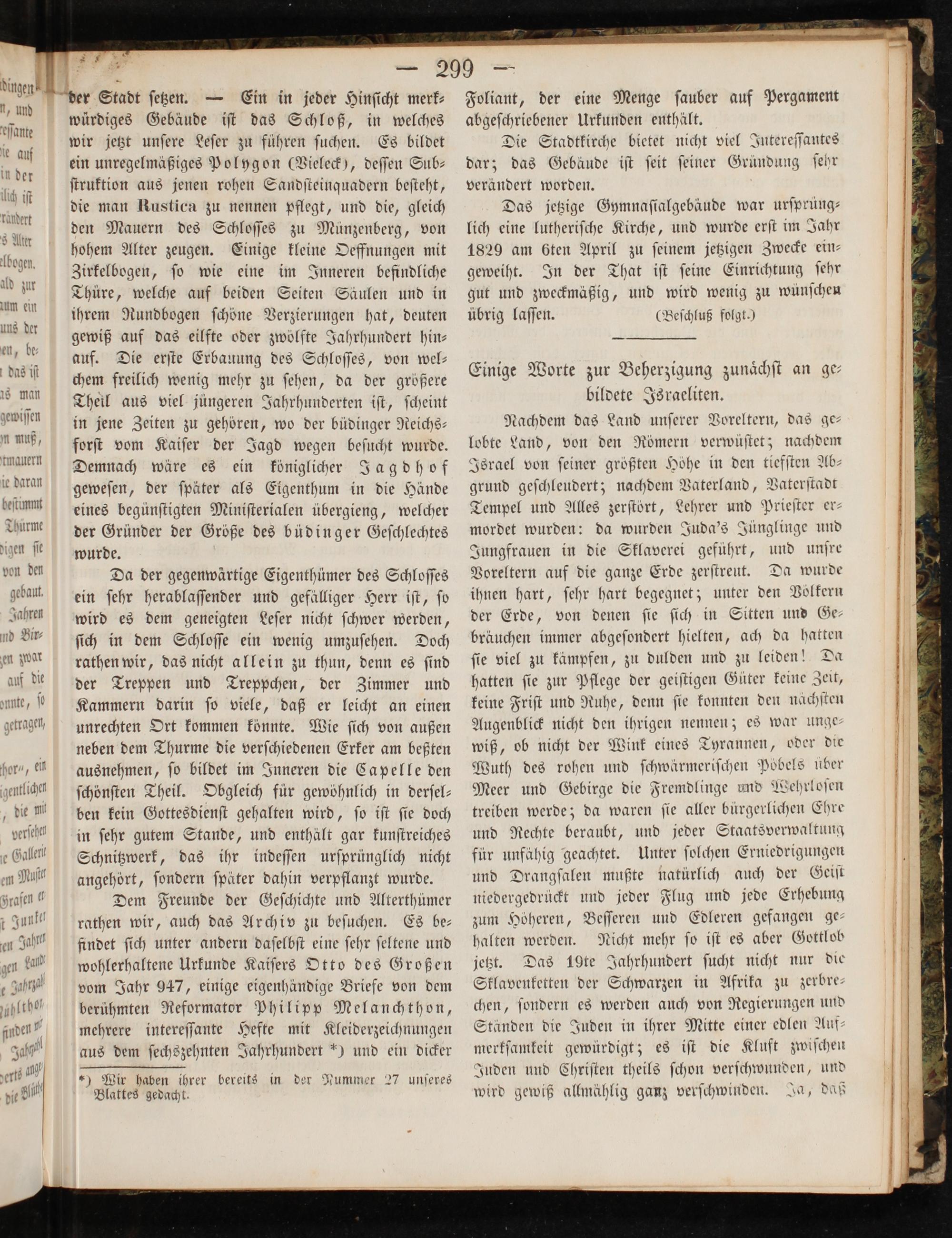 jetzt. Das 19te Jahrhundert ſucht nicht nur die Sklavenketten der Schwarzen in Afrika zu zerbre— chen, ſondern es werden auch von Regierungen und Ständen die Juden in ihrer Mitte einer edlen Auf— merkſamkeit gewürdigt; es iſt die Kluft zwiſchen Juden und Chriſten theils ſchon verſchwunden, und wird gewiß allmählig ganz verſchwinden.
