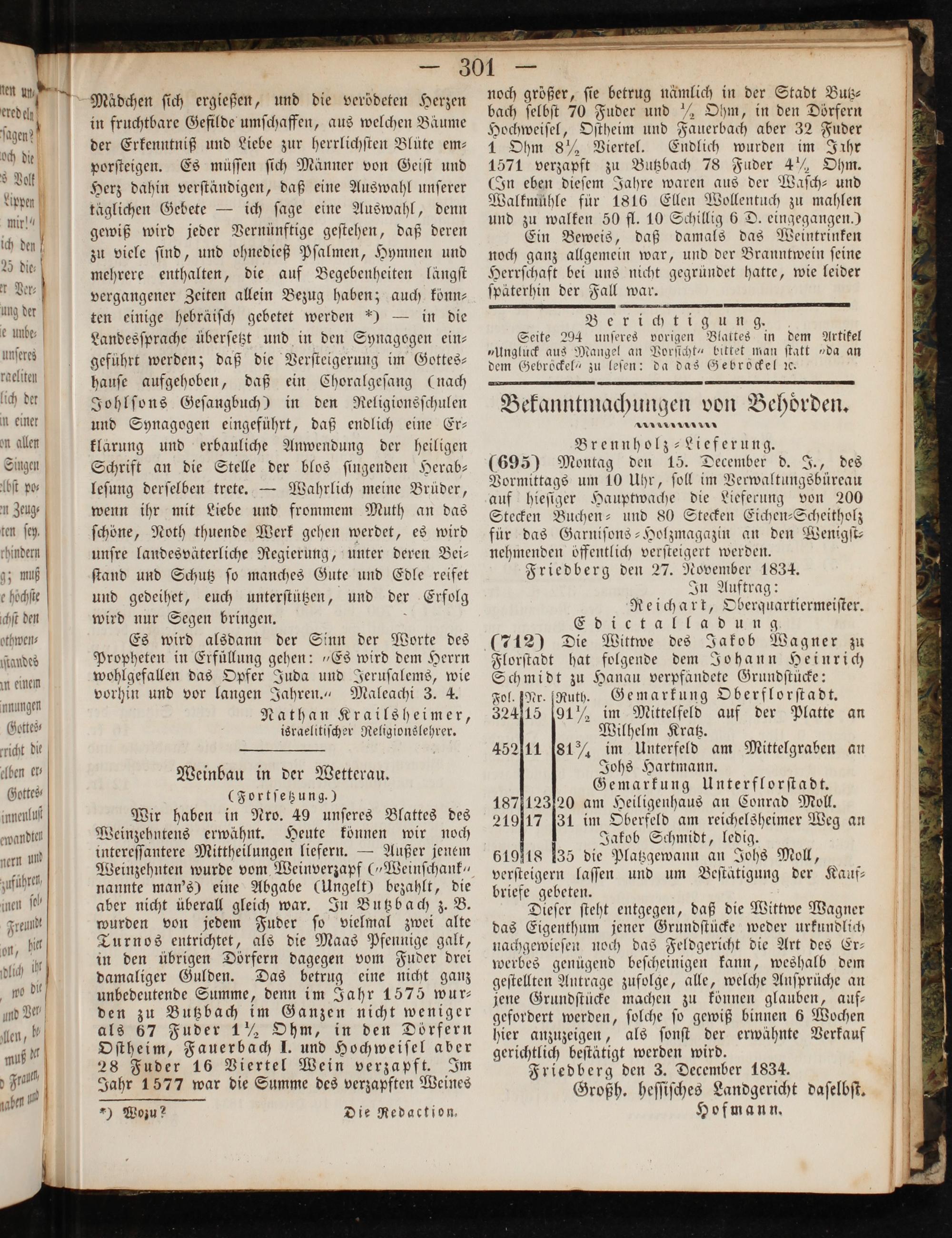 Friedberg den 3. December 1834.