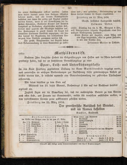 Friedberg den 12. Maͤrz 1834. Der proviſoriſche Ausſchuß des Vereins, und im Namen deſſelben Kuͤchler, Kreisrath.