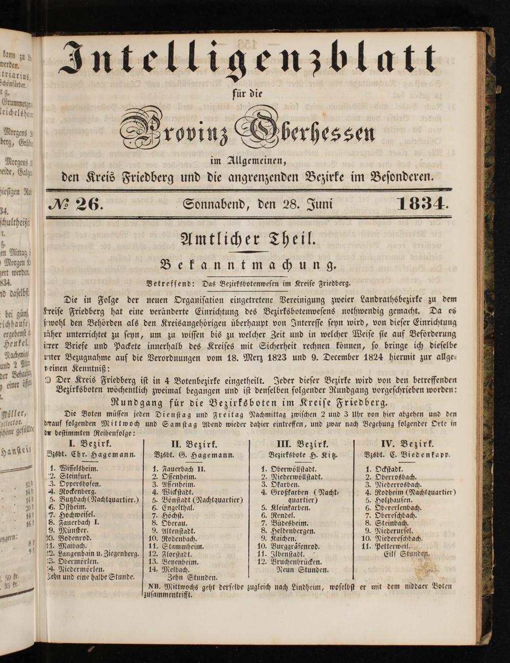 M26. Sonnabend, den 28. Juni 1834.