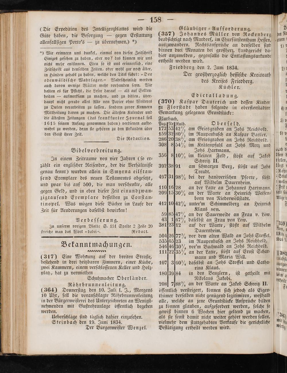 Friedberg den 2. Juni 1834. Der großherzoglich heſſiſche Kreisrath des Kreiſes Friedberg. Küchler.