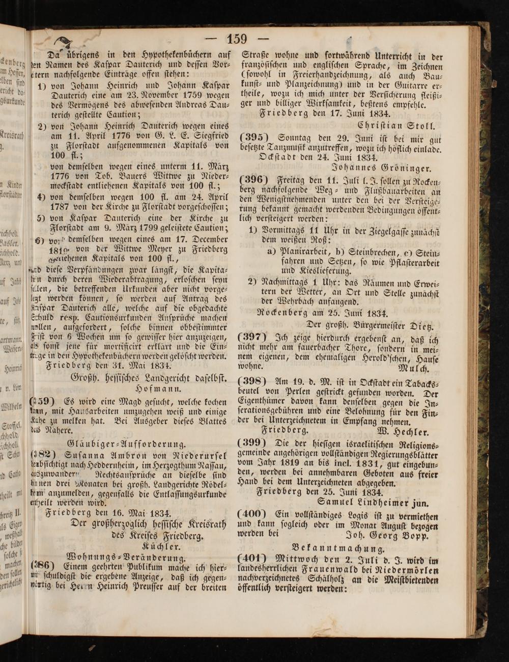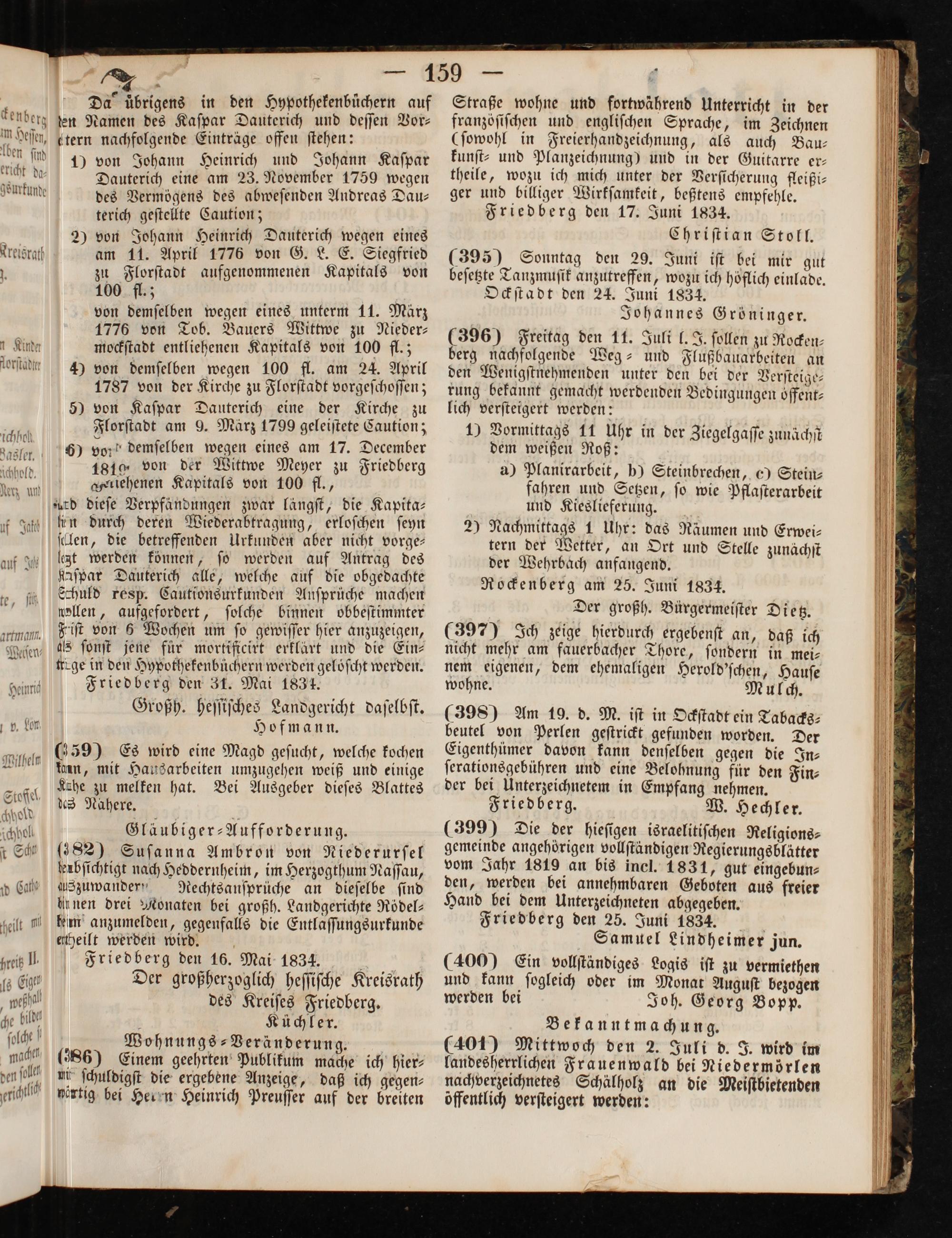 Friedberg den 31. Mai 1834. Großh. heſſiſches Landgericht daſelbſt. Hofmann.