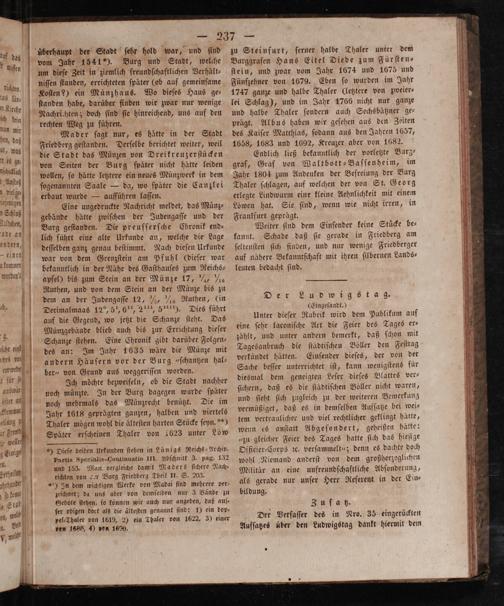 Weiter ſind dem Einſender keine Stücke be⸗ kannt. Schade daß ſie gerade in Friedberg am ſeltenſten ſich finden, und nur wenige Friedberger auf nähere Bekanntſchaft mit ihren ſilbernen Lands— leuten bedacht ſind.