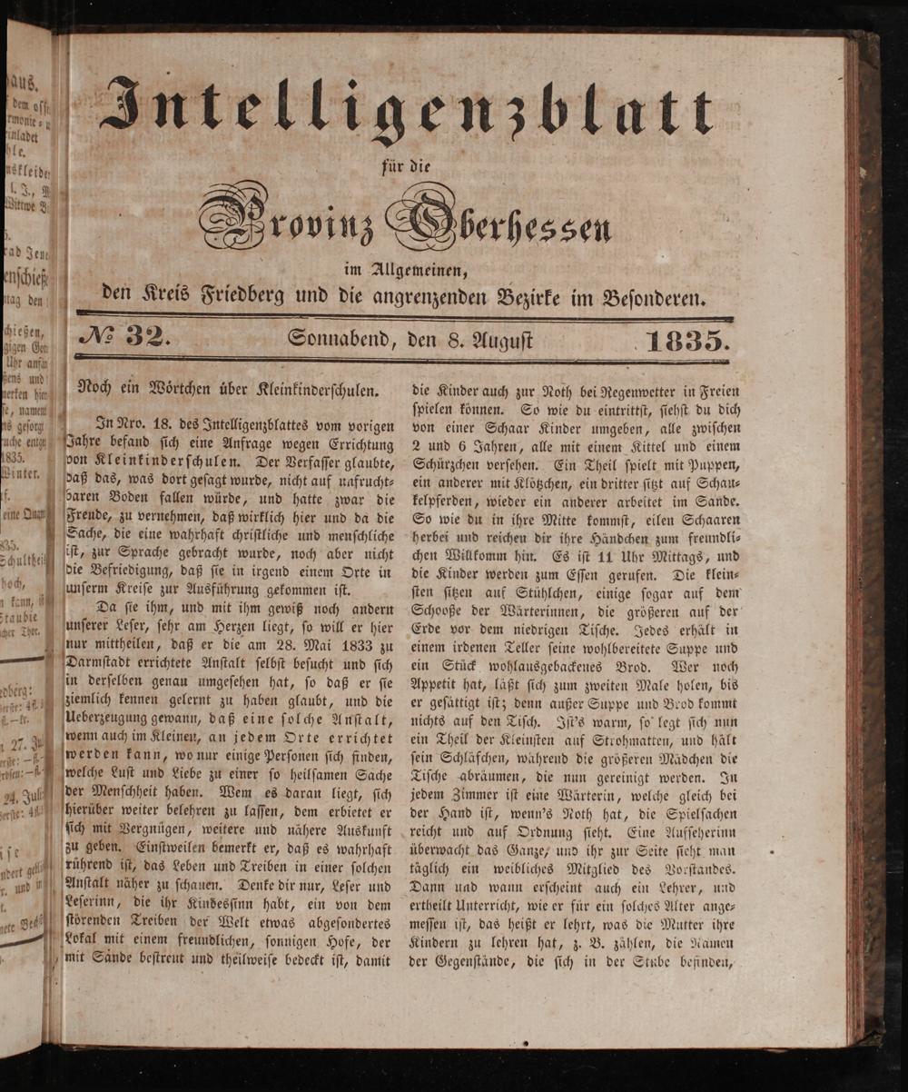 nur mittheilen, daß er die am 28. Mai 1833 zu Darmſtadt errichtete Anſtalt ſelbſt beſucht und ſich in derſelben genau umgeſehen hat, ſo daß er ſie ziemlich kennen gelernt zu haben glaubt, und die Ueberzeugung gewann, daß eine ſolche Anſtalt, wenn auch im Kleinen, an jedem Orte errichtet werden kann, wo nur einige Perſonen ſich finden, welche Luſt und Liebe zu einer ſo heilſamen Sache der Menſchheit haben. Wem es daran liegt, ſich hierüber weiter belehren zu laſſen, dem erbietet er ſich mit Vergnügen, weitere und nähere Auskunft 9 zu geben. Einſtweilen bemerkt er, daß es wahrhaft