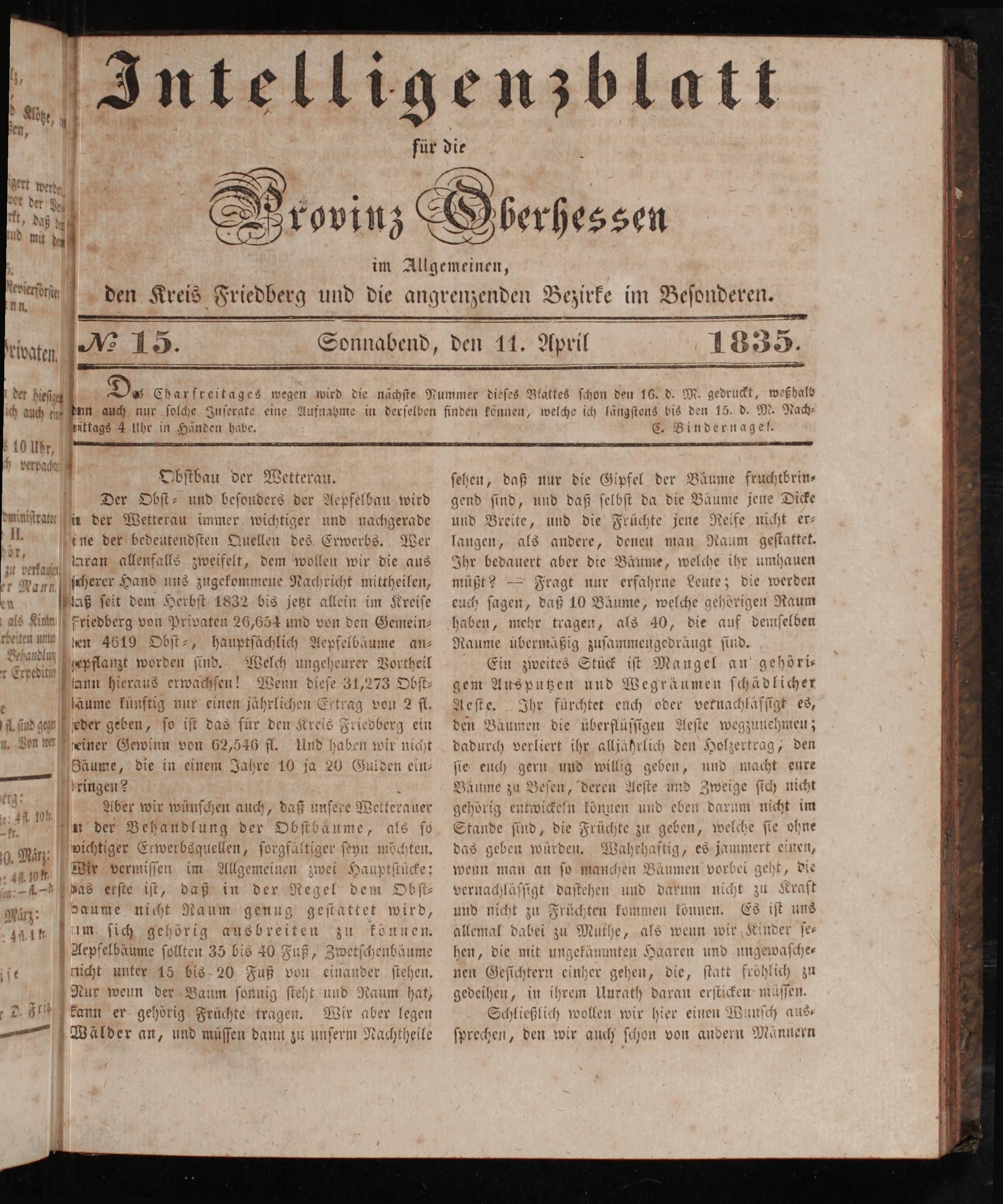 ſriaten W 15. Sonnabend, den 11. April 1835. 8 22 2— 5