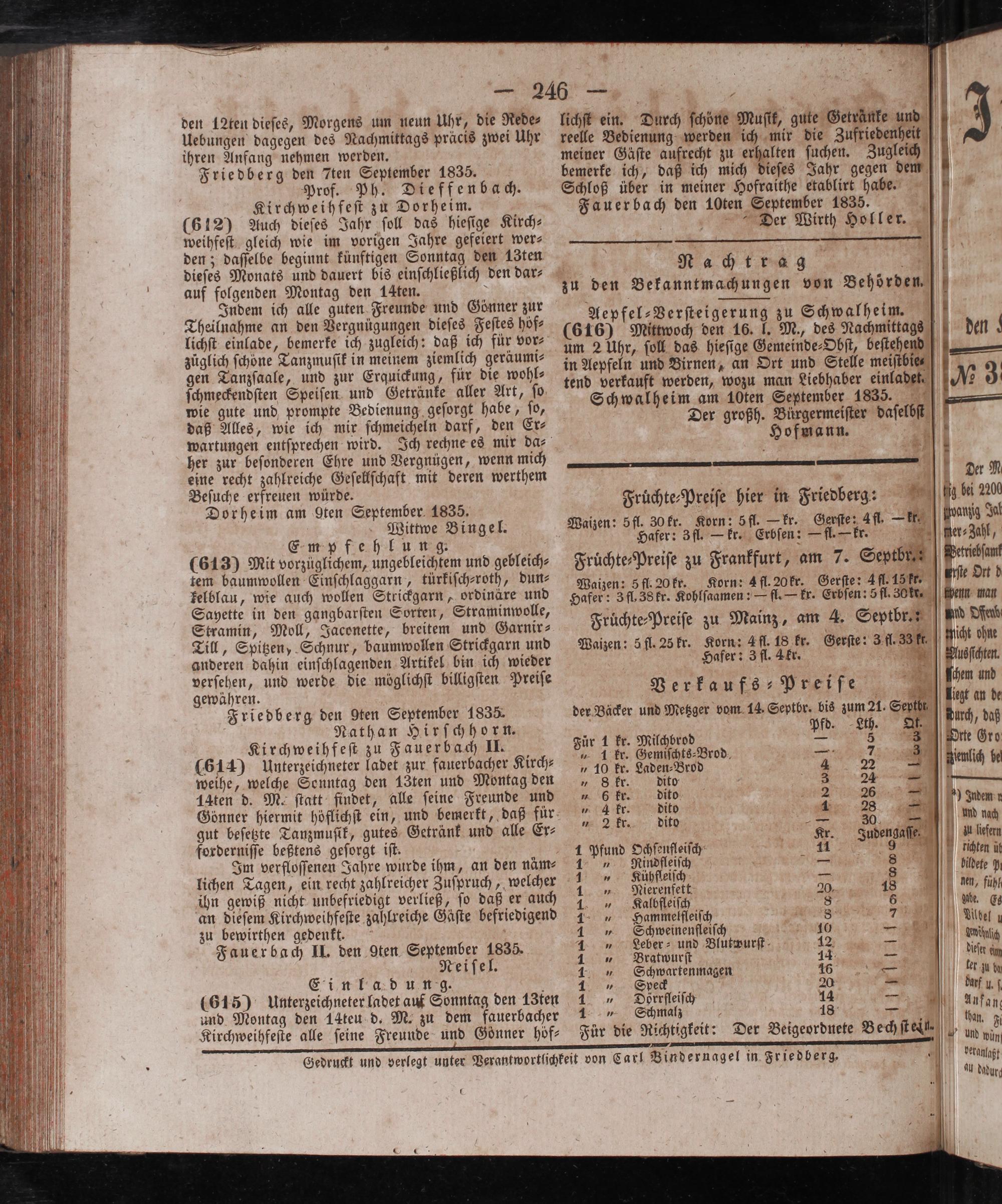Gedruckt und verlegt unter Verantwortlichkeit von Carl Bindernagel in Friedberg, e