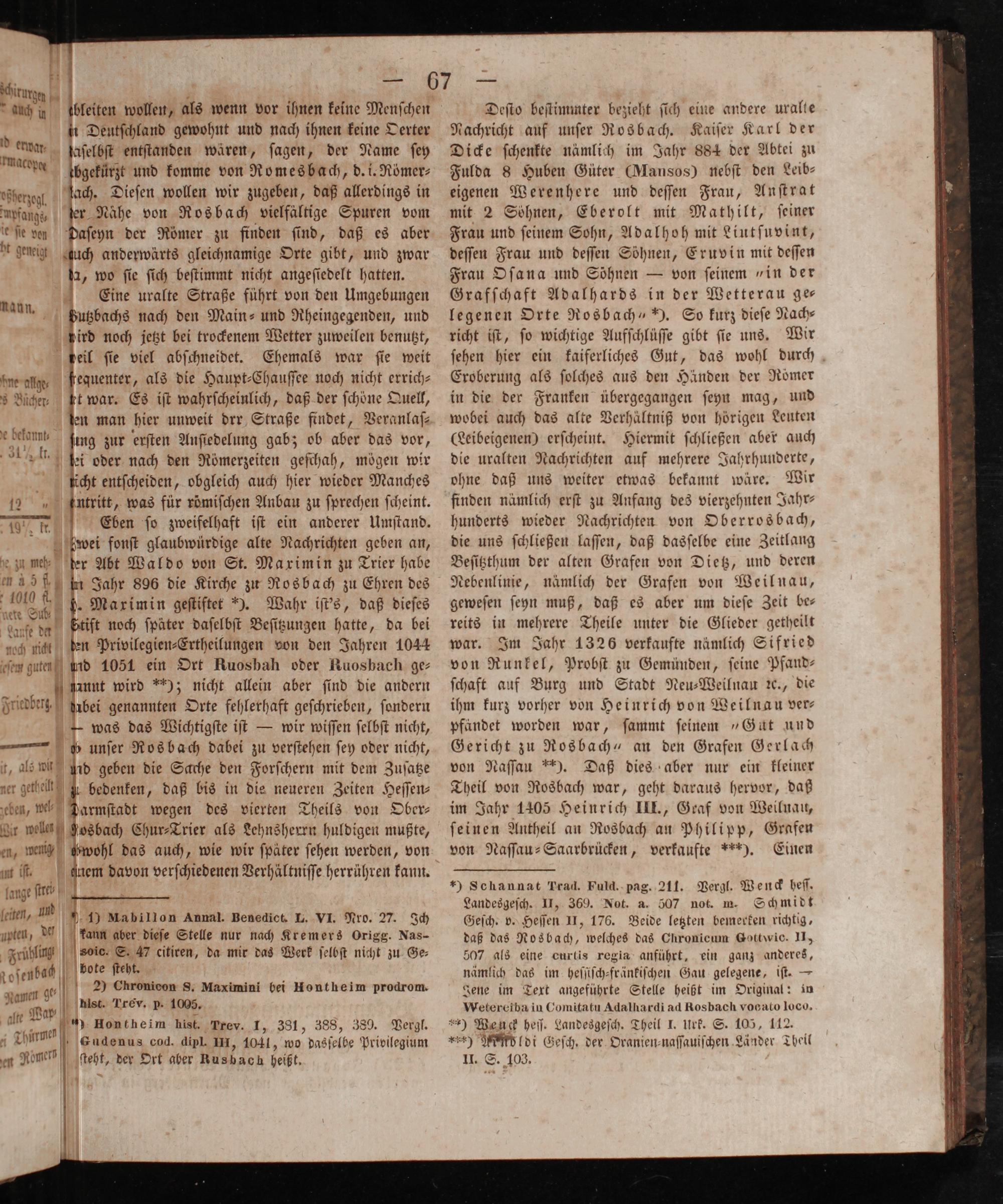 *) Schannat Prad. Fuld. pag. 211. Vergl. Weuck heſſ. Landesgeſch. II, 369. Not. a. 507 not. m. Schmidt Geſch. v. Heſſen II, 176. Beide letzten bemerken richtig, daß das Rosbach, welches das Chronicum Gottwie. II, 507 als eine curtis regia anführt, ein ganz anderes, nämlich das im heſſiſch-fränkiſchen Gau gelegene, iſt.— Jene im Text angeführte Stelle heißt im Original: in Wetereiba in Comitatu Adalhardi ad Rosbach vocato loco.