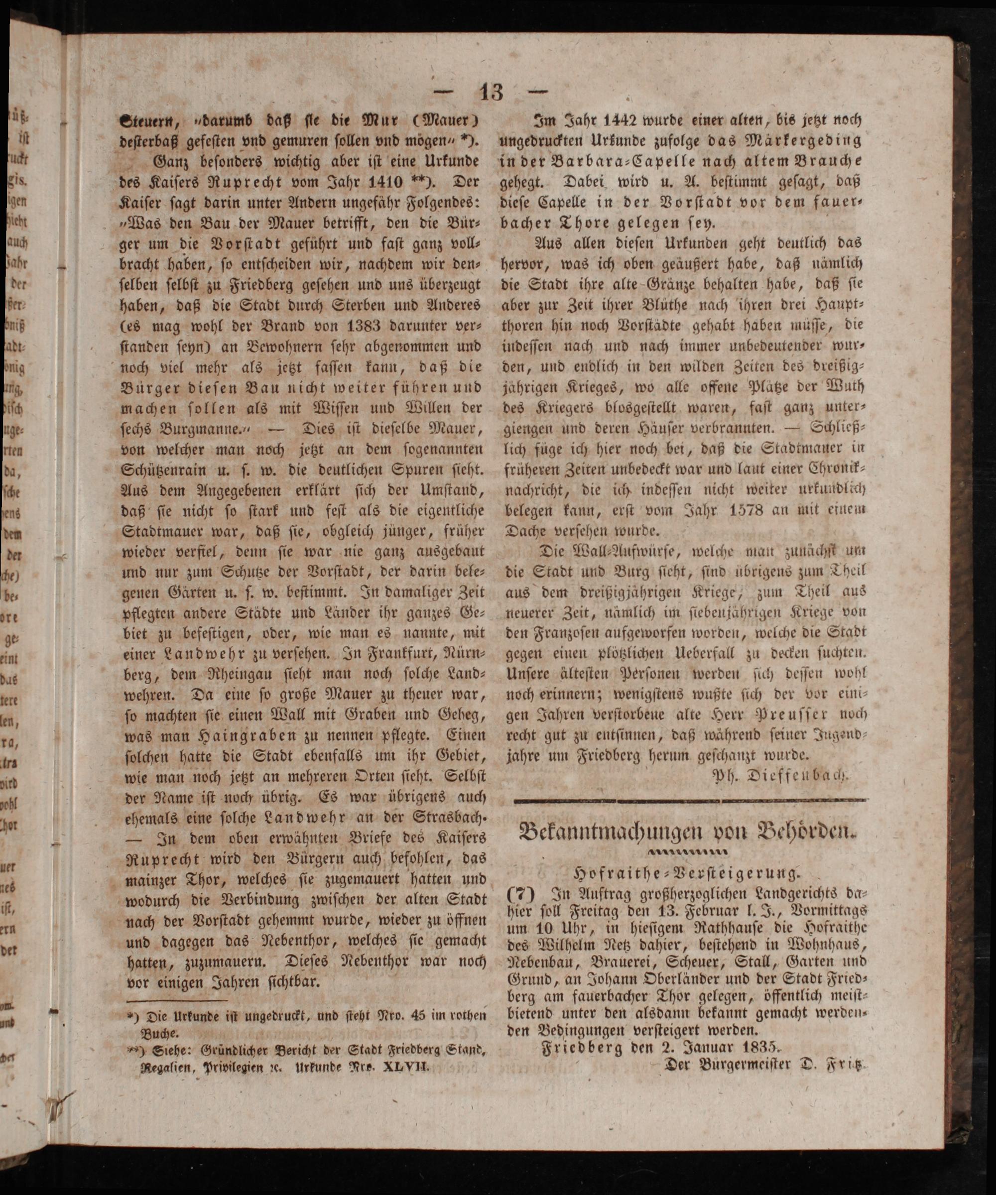 den Bedingungen verſteigert werden. Friedberg den 2. Januar 1835. Der Buürgermeiſter D. Fritz