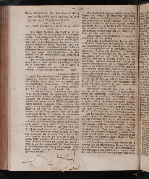 Die von Schrautenbachiſche Stiftung iſt durch das Teſtament der Freyfrau Anna Dorothed von Schrautenbach geb. von Görtz am 18. Oktbr. 1732 gegründet. Die erdentlichen Einkünfte dieſer Stiftung belaufen ſich jährlich auf ungefähr 2300 fl. und ſind vorzugsweiſe für Unterſtützungen der Hülfsbedürftigen in den 13 zur ehemaligen Graf⸗ ſchaft Kaichen gehörigen Gemeinden des Kreſes Friedberg beſtimmt. 5 5