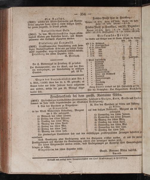 Einladung zur Tanzmuſik. (902) Nächſtkommenden Neujahrstag nach been⸗ digter Rachmittagskirche iſt bei mir gut beſetzte Tanz⸗ muſik anzutreffen, wozu ich hierdurch höflichſt einlade. Friedberg den 28ten Dezember 1835. 5 G. Gerlach.