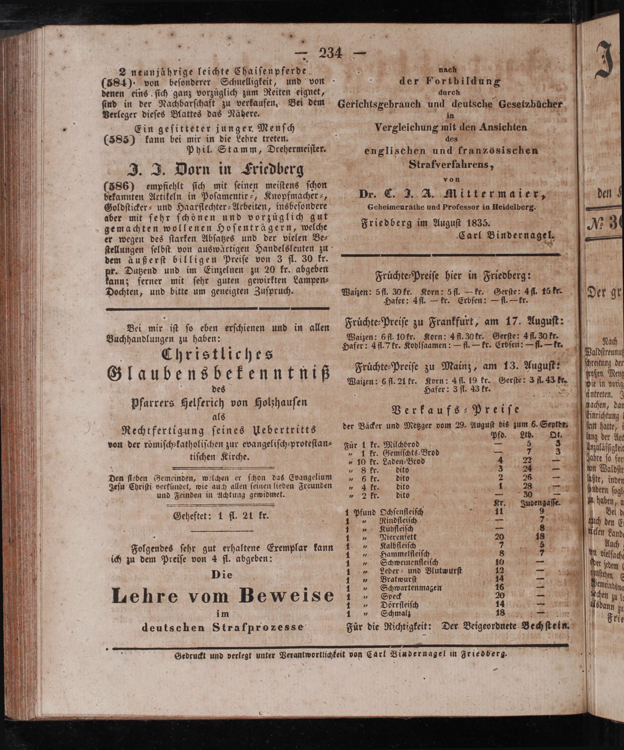 Gedruckt und verlegt unter Verantwortlichkeit von Carl Bindernagel in Friedberg. W